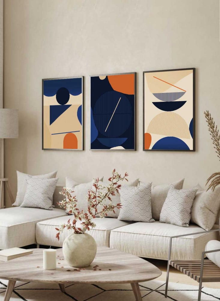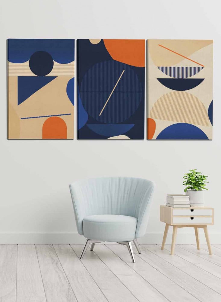 طقم من ٣ لوحات كانفاس على إطار خشبي، تصميم فن تجريدي معاصر، للمنزل، غرفة المعيشة، المكتب، الديكور