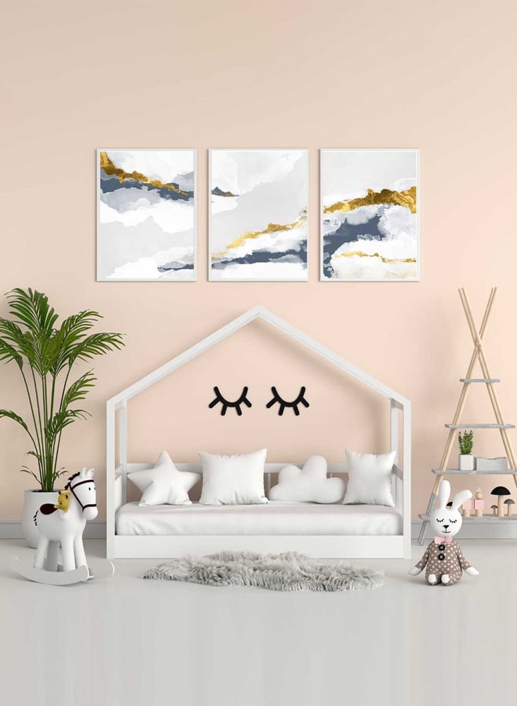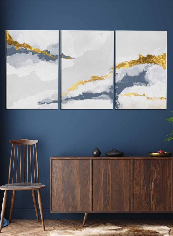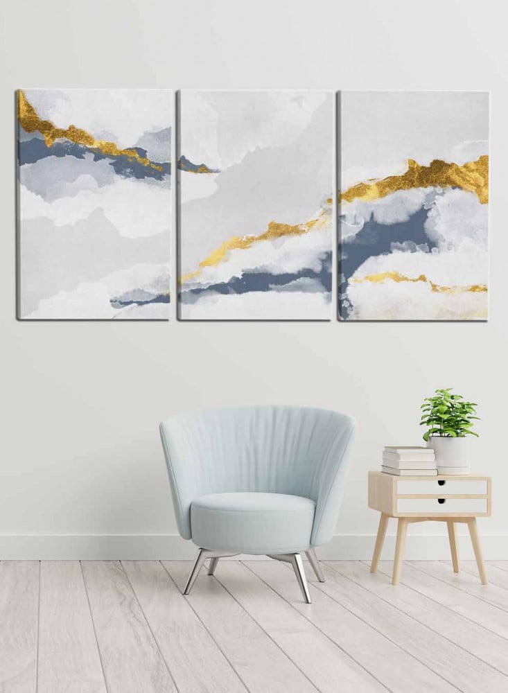 Set of 3 Canvas Paintings on Wooden Frame, Light Oil Art Design, for Home, Living Room, Office, Decoration