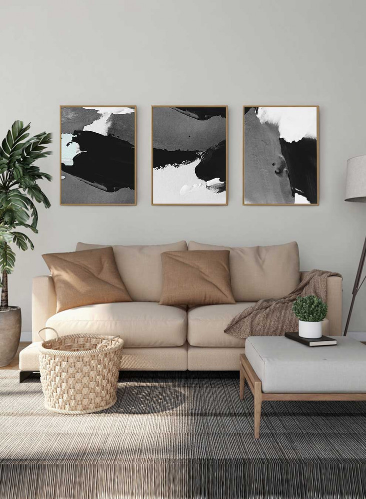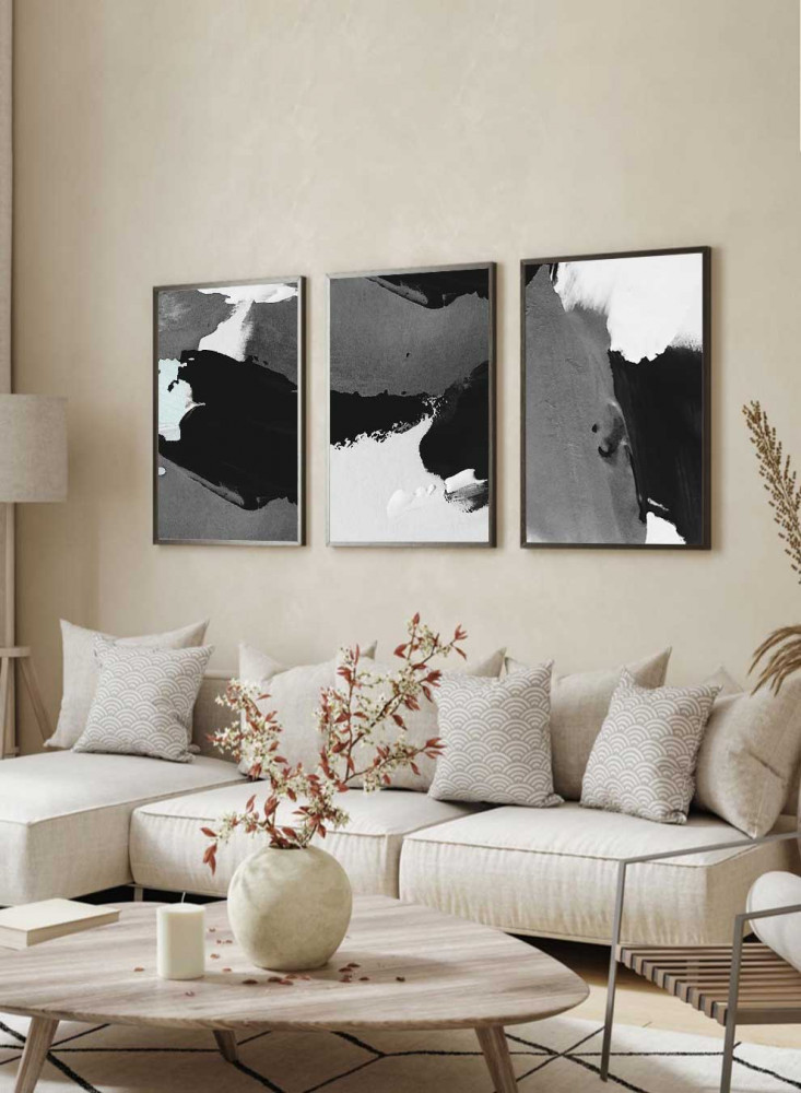 طقم من ٣ لوحات كانفاس على إطار خشبي، تصميم فن الزينة، للمنزل، غرفة المعيشة، المكتب، الديكور