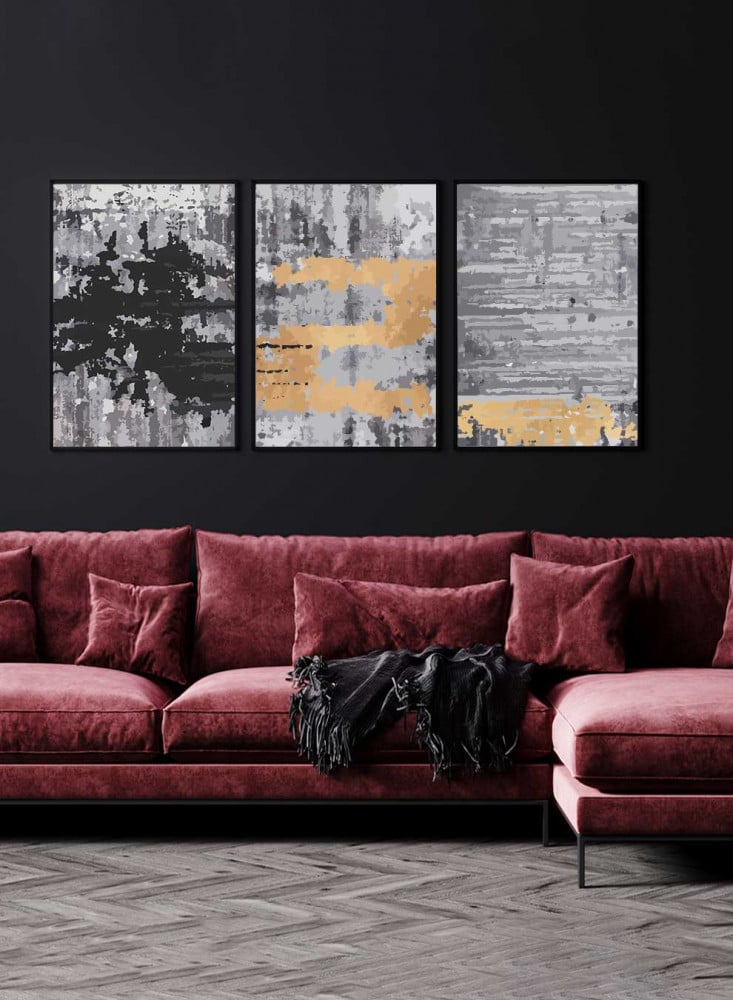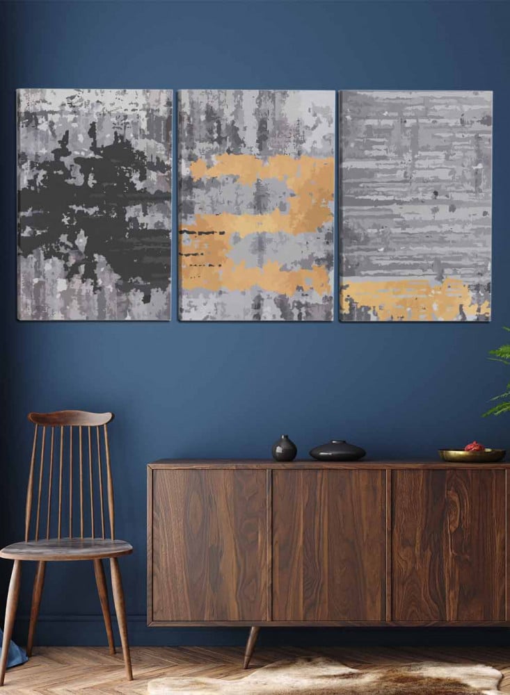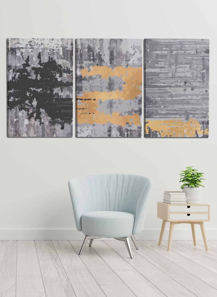 Set of 3 Canvas Paintings on Wooden Frame, Watercolor Painting Design, for Home, Living Room, Office, Decoration
