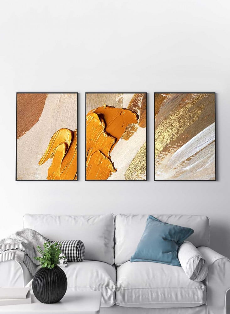 طقم من ٣ لوحات كانفاس على إطار خشبي، تصميم فن زيتي، للمنزل، غرفة المعيشة، المكتب، الديكور