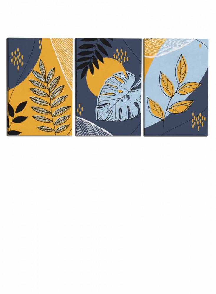 طقم من ٣ لوحات كانفاس على إطار خشبي، تصميم أوراق أشجار ملونة، للمنزل، غرفة المعيشة، المكتب، الديكور