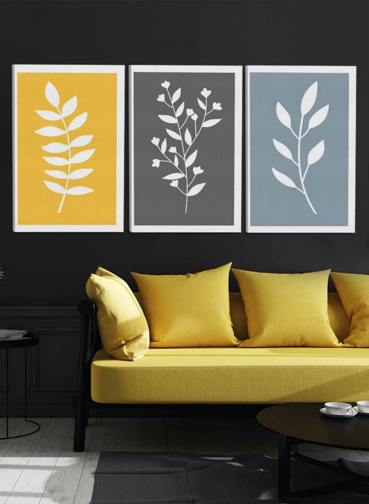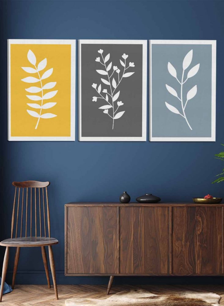 طقم من ٣ لوحات كانفاس على إطار خشبي، تصميم رسم جمالي للزهور، للمنزل، غرفة المعيشة، المكتب، الديكور