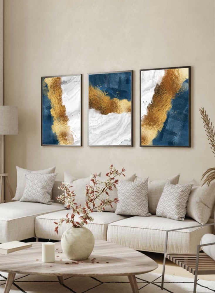 Set of 3 Canvas Paintings on Wooden Frame, Abstract River Print Design, for Home, Living Room, Office, Decoration