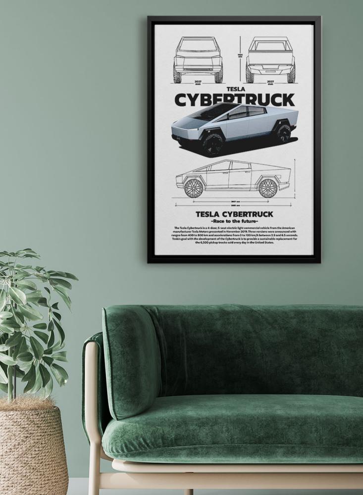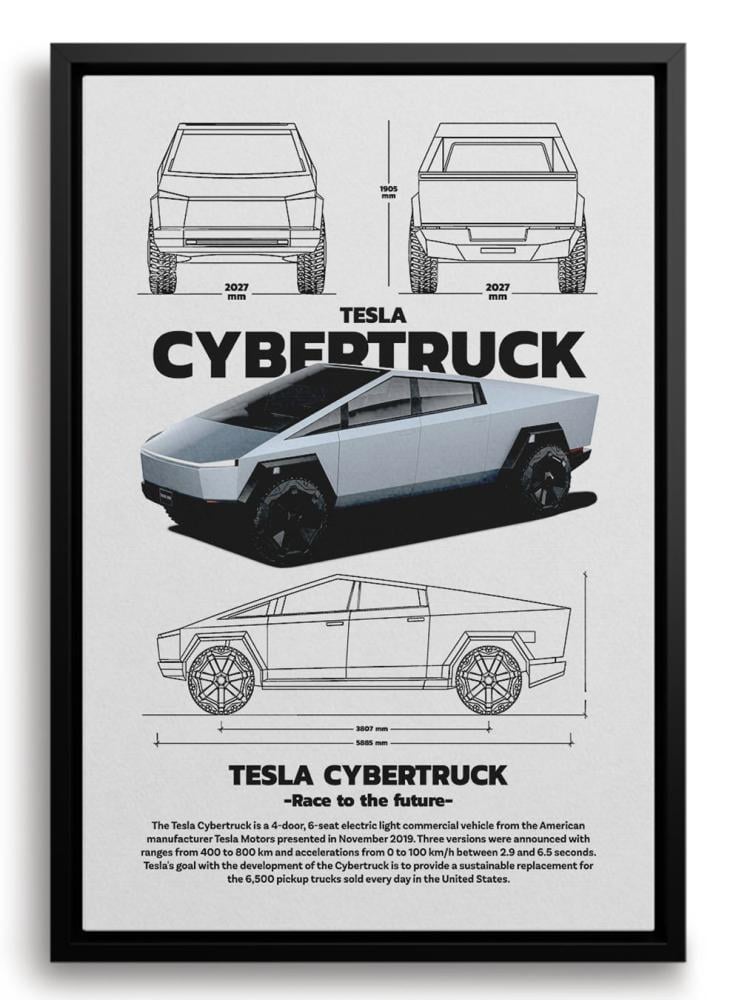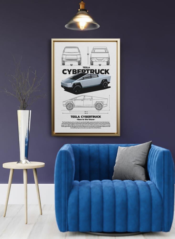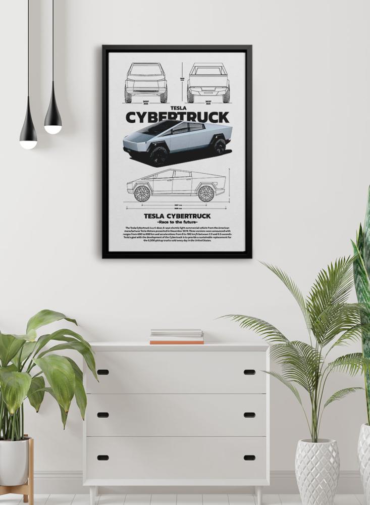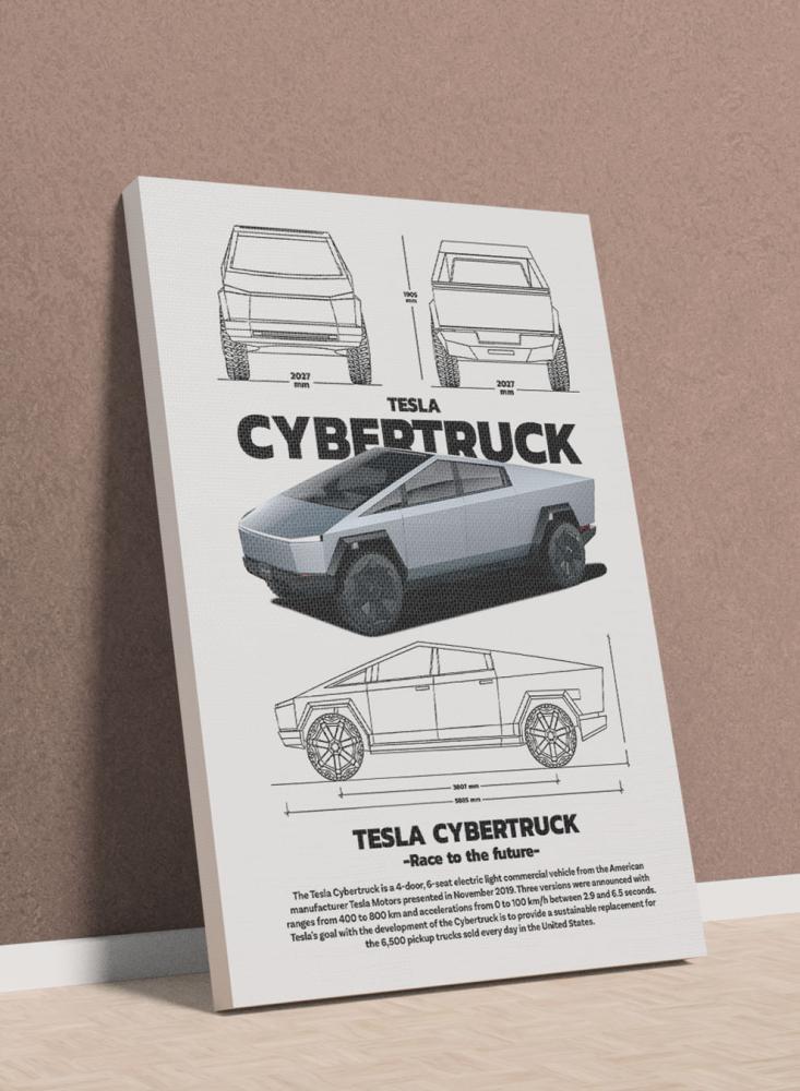 لوحة كانفاس على إطار خشبي بتصميم سيارة رياضية تيسلا