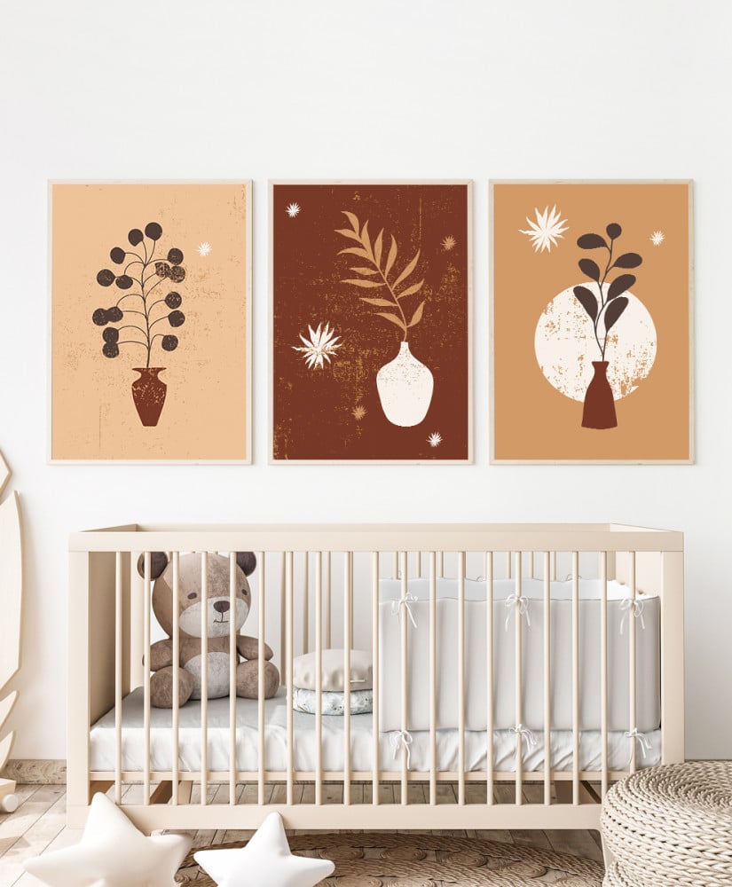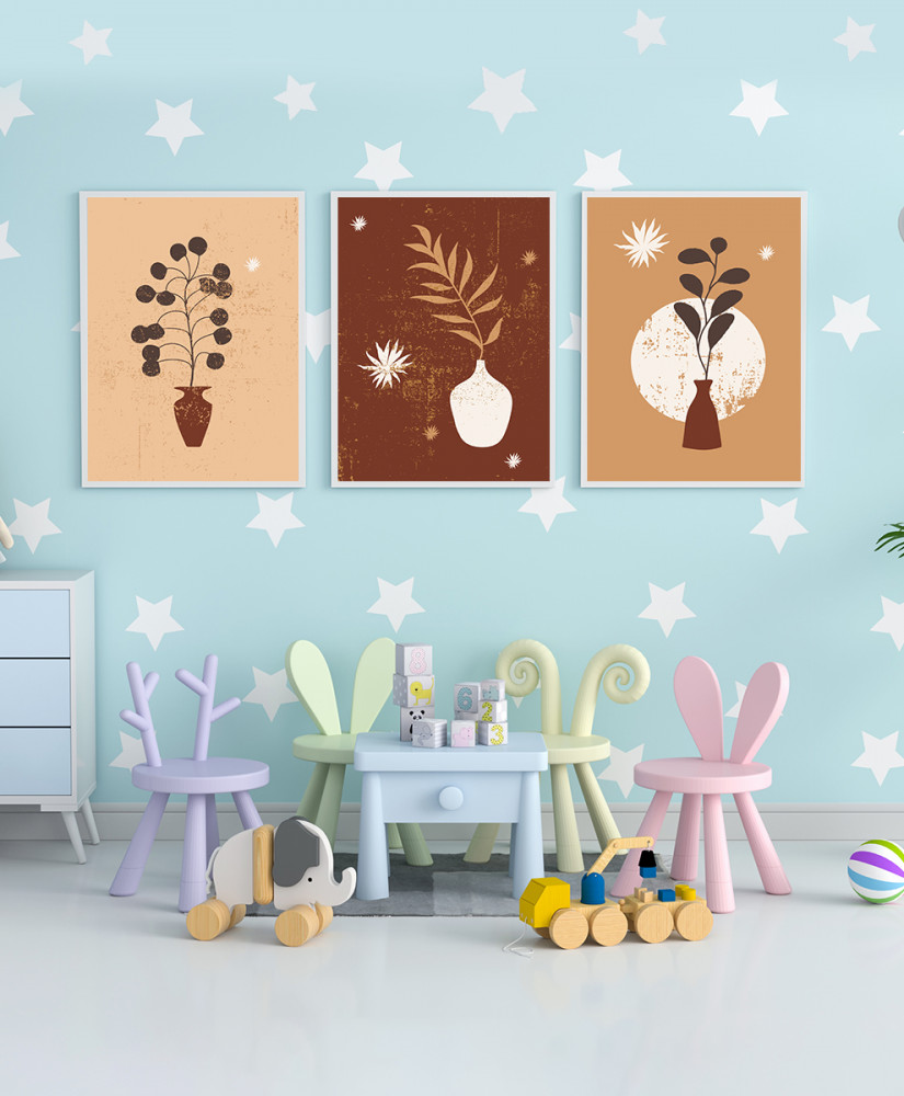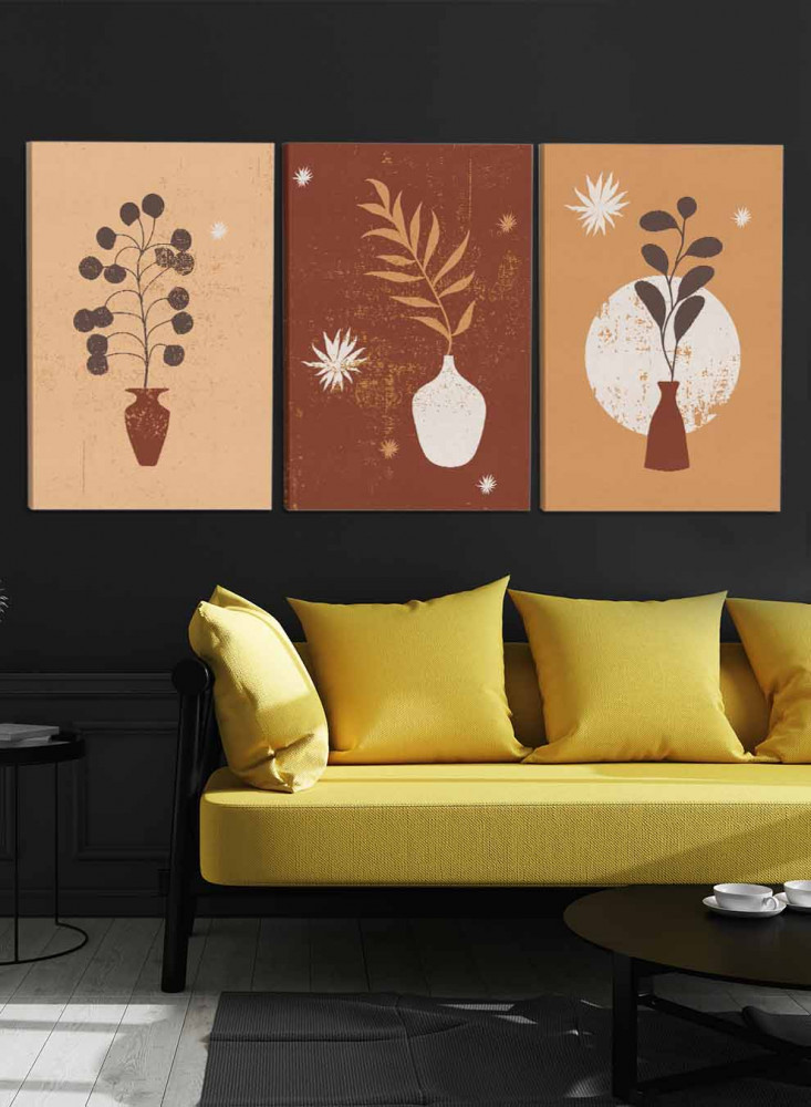 طقم من ٣ لوحات كانفاس على إطار خشبي، تصميم رسم تجريدي للزهريات، للمنزل، غرفة المعيشة، المكتب، الديكور