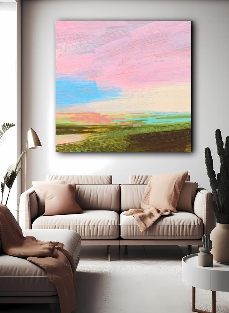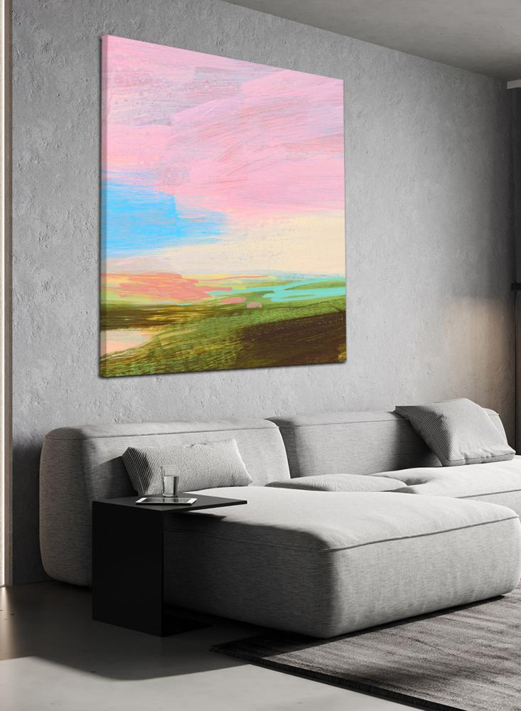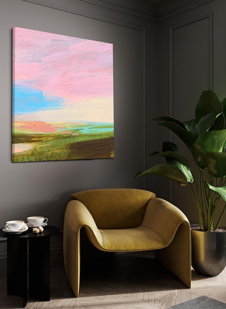 لوحة كانفاس على إطار خشبي بتصميم نمط فني مشهد طبيعى
