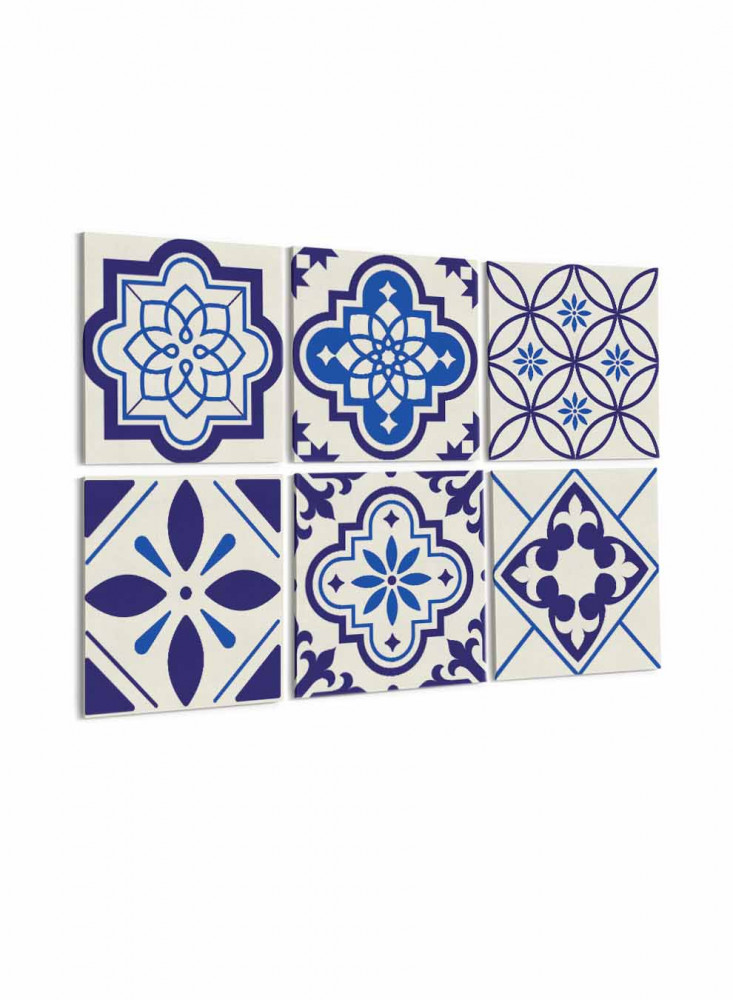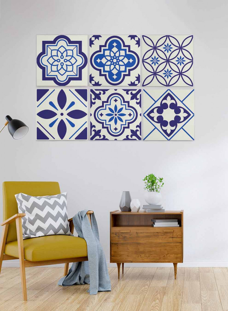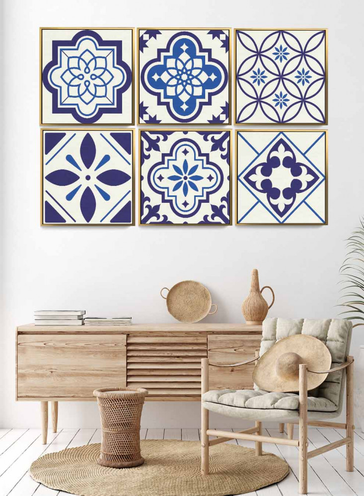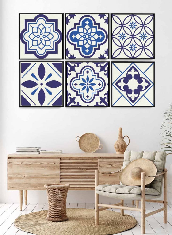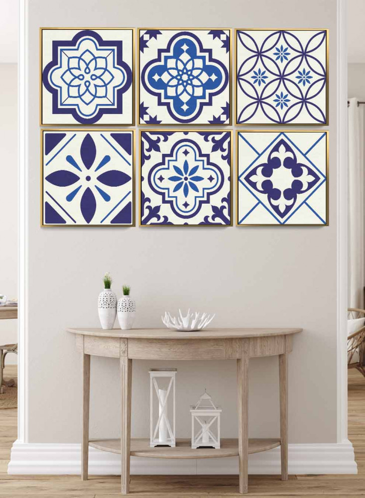 طقم من ٦ لوحات كانفاس مربع على إطار خشبي، تصميم اشكال زهرية مزخرفة ، للمنزل، غرفة المعيشة، المكتب، الديكور