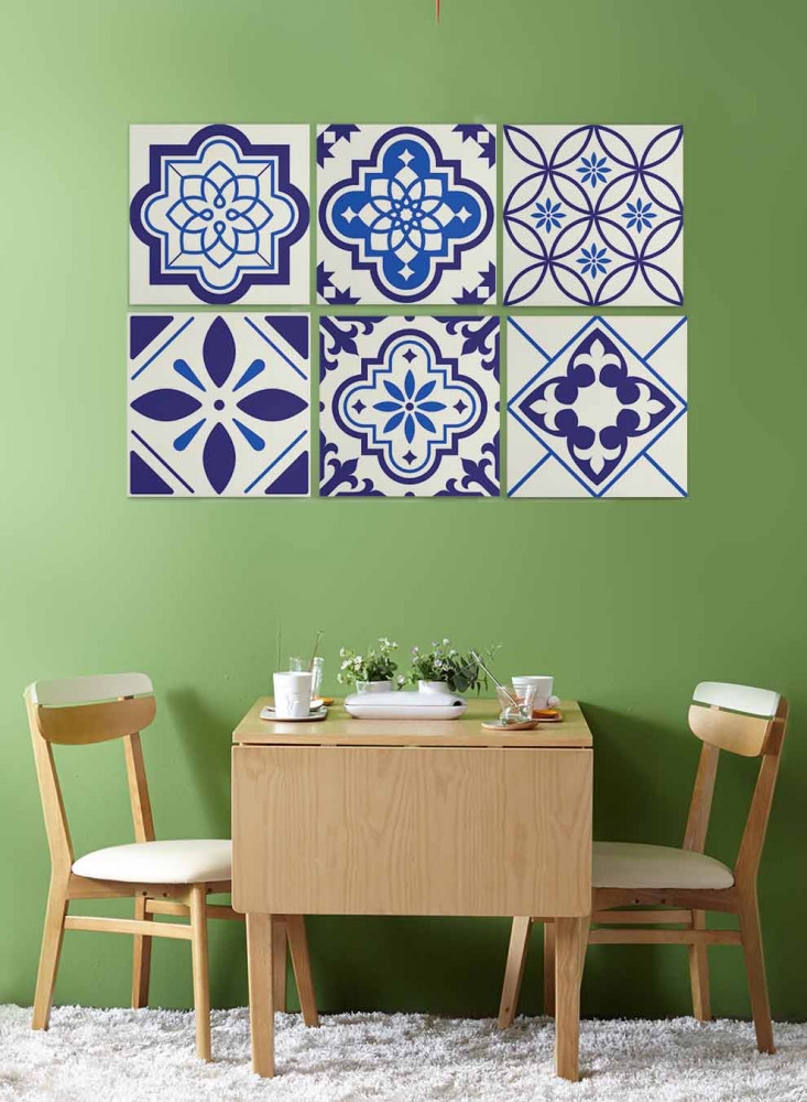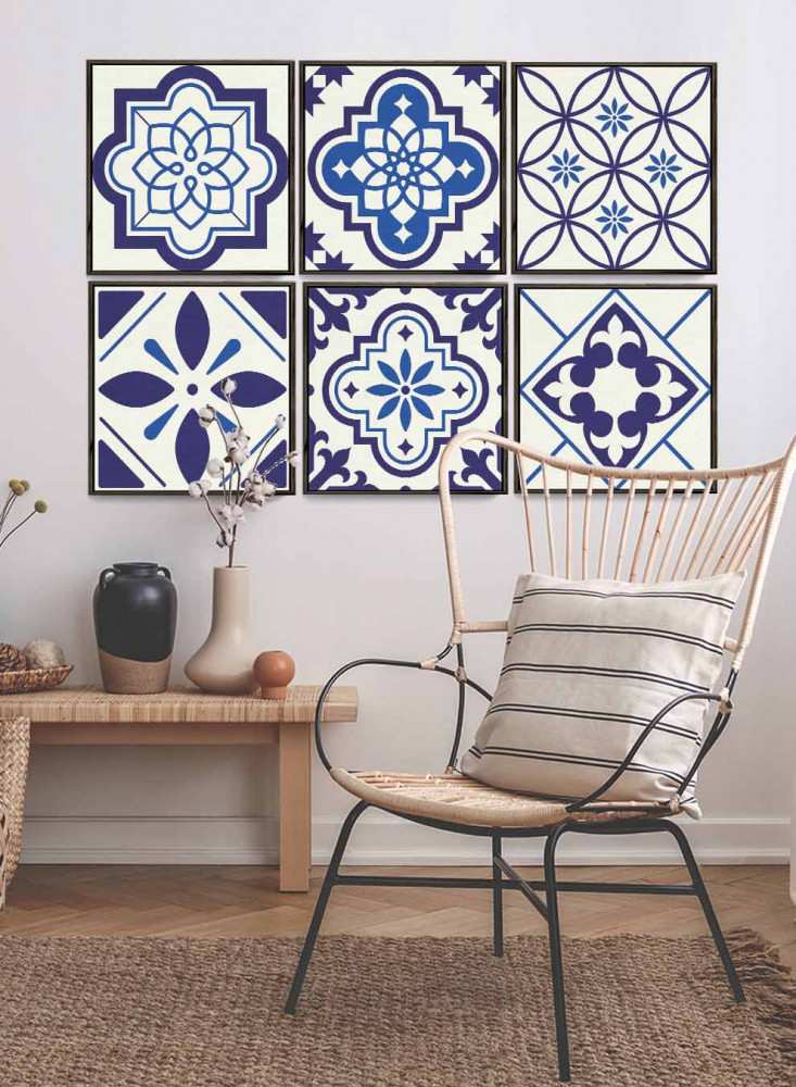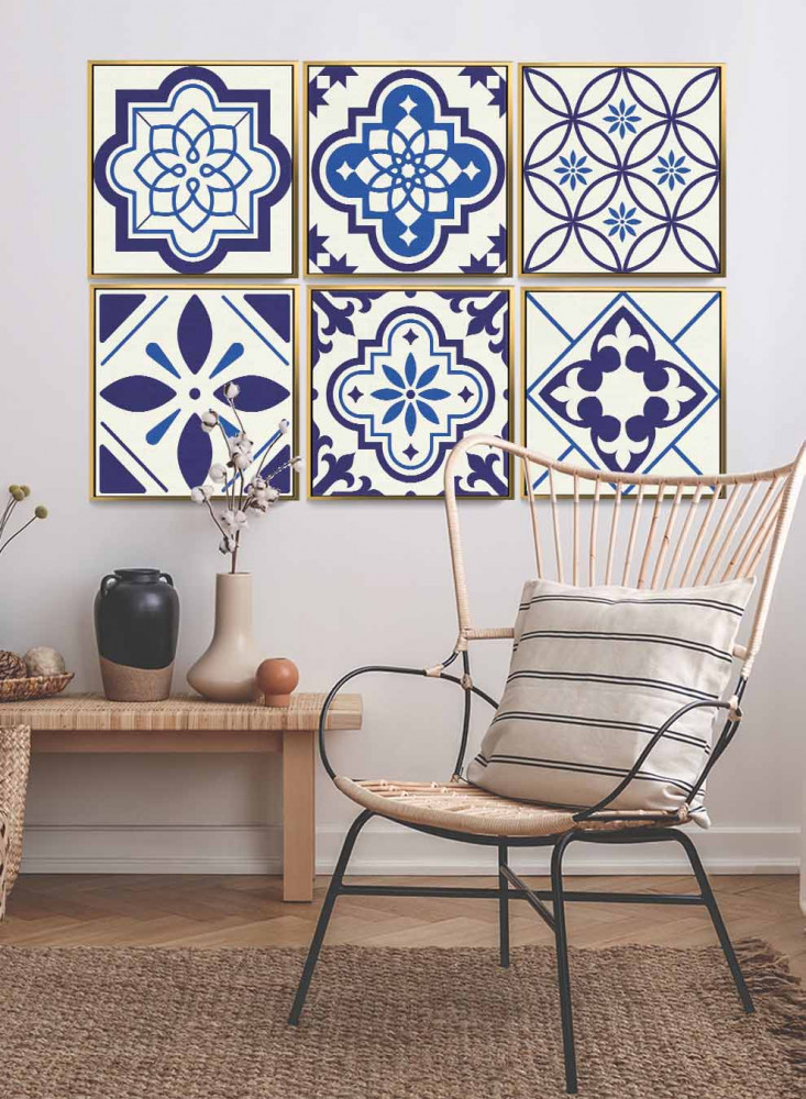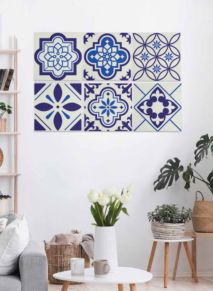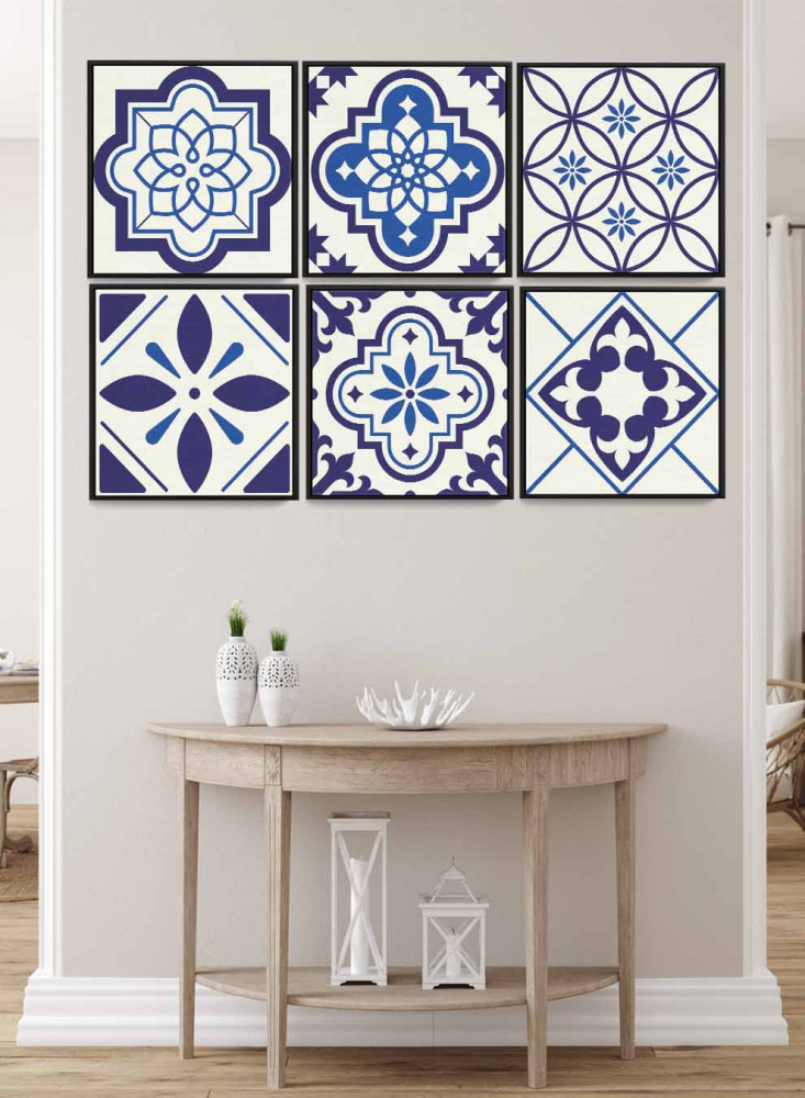 طقم من ٦ لوحات كانفاس مربع على إطار خشبي، تصميم اشكال زهرية مزخرفة ، للمنزل، غرفة المعيشة، المكتب، الديكور
