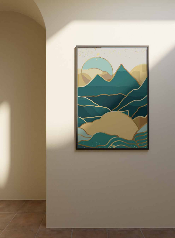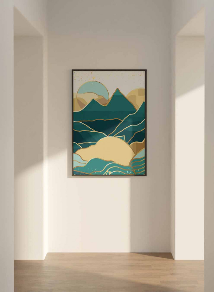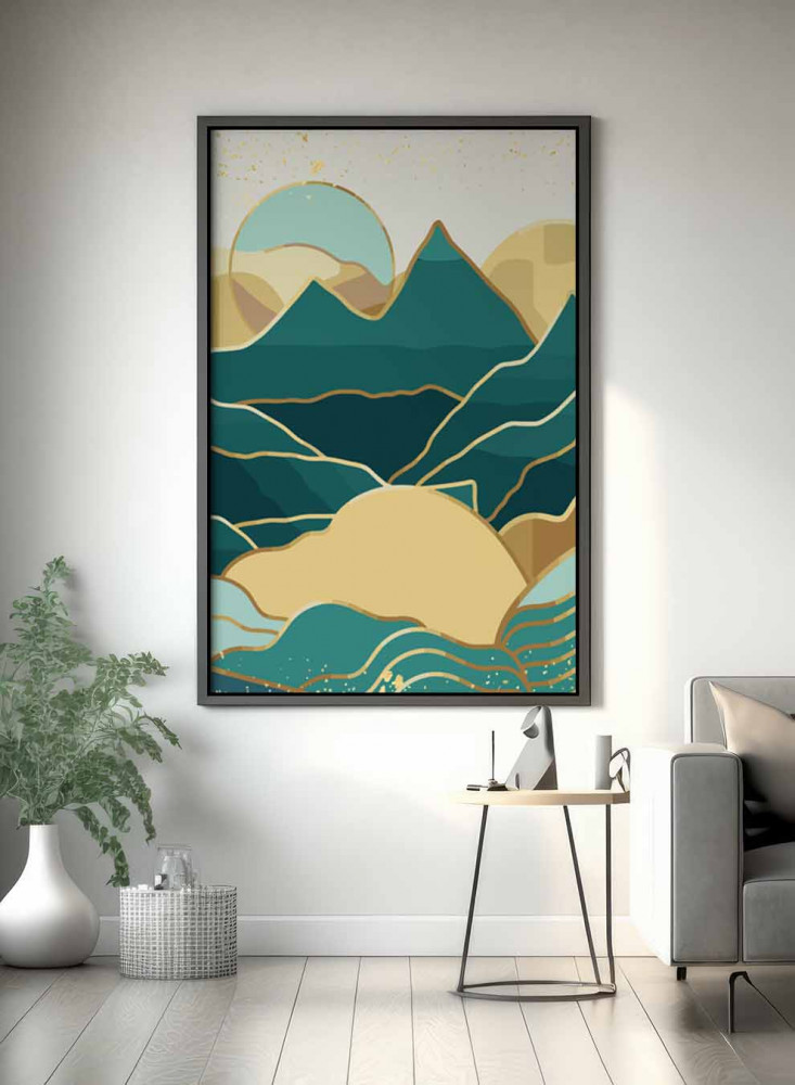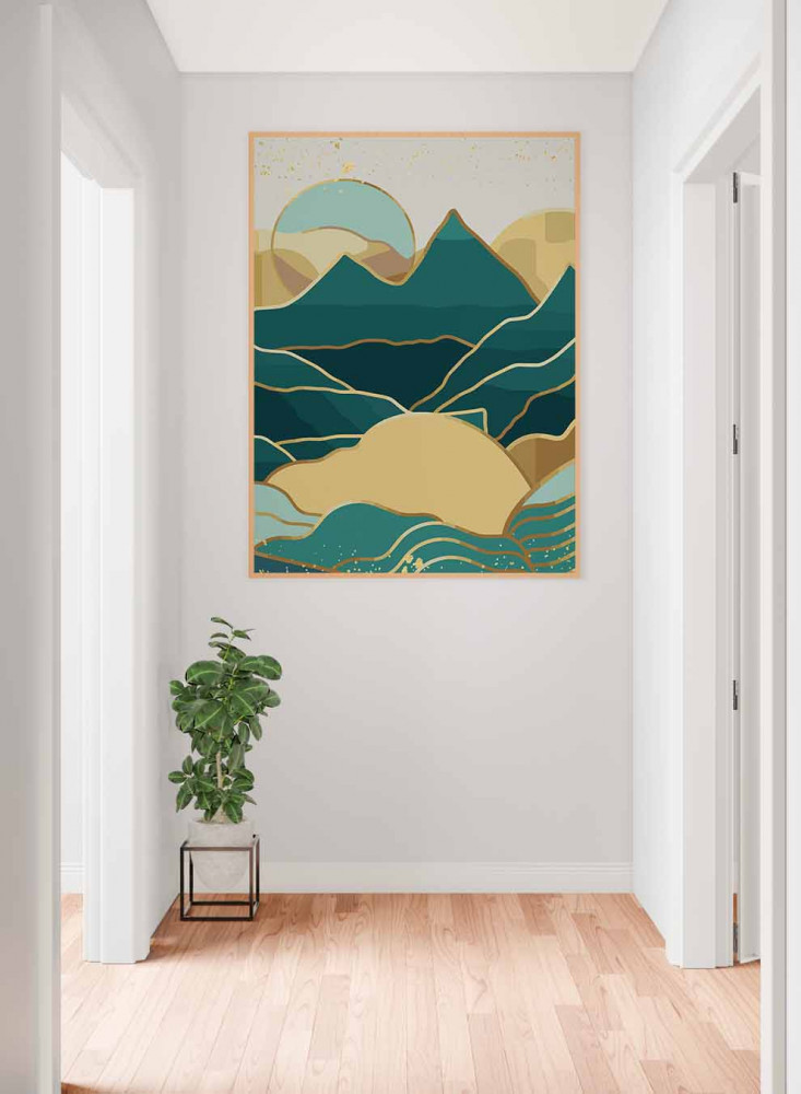 لوحة كانفاس على إطار خشبي، تصميم نمط جبال ، للمنزل، غرفة المعيشة، المكتب، الديكور