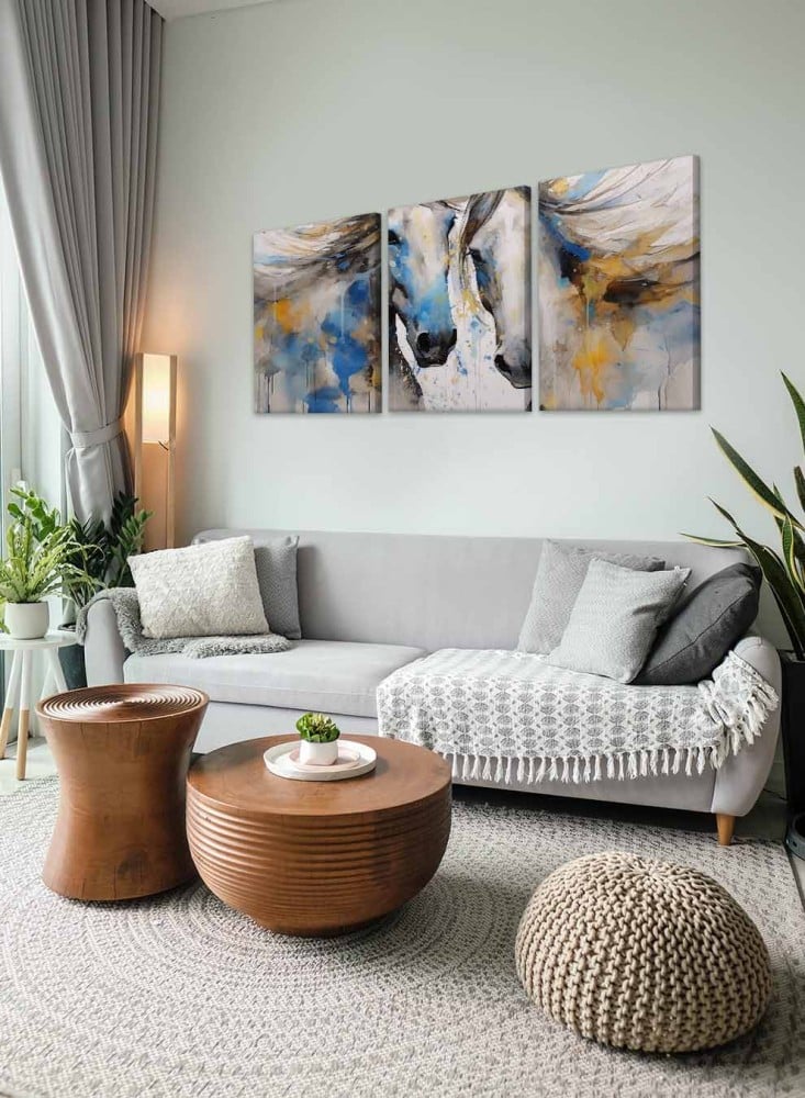 طقم من ٣ لوحات كانفاس على إطار خشبي بتصميم فن تجريدي لزوج من الخيل