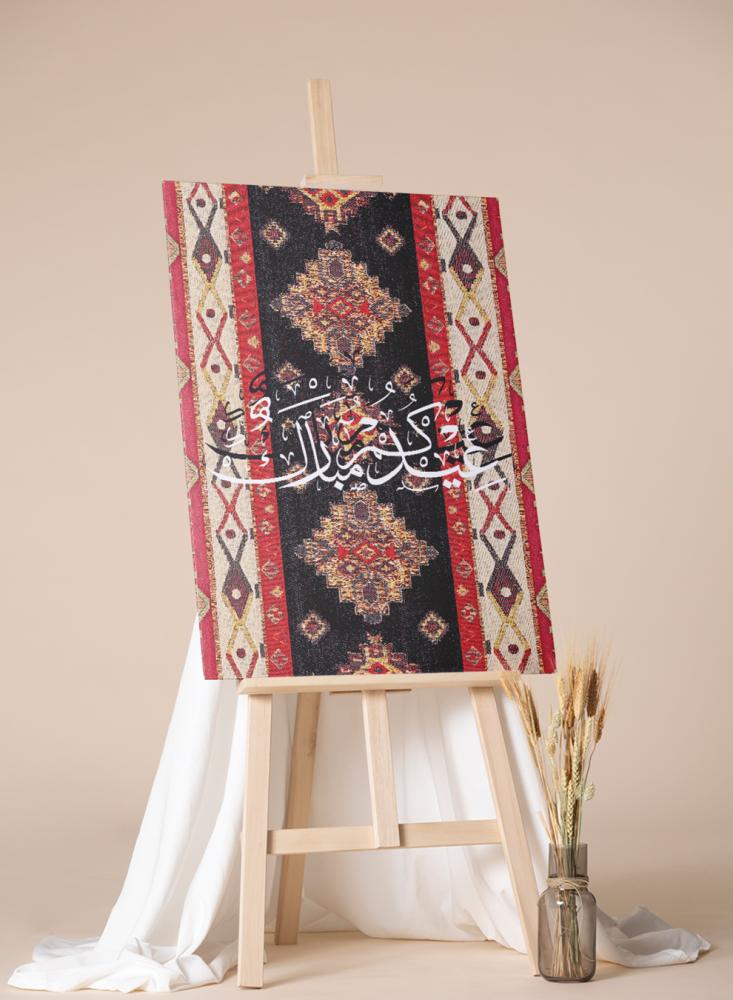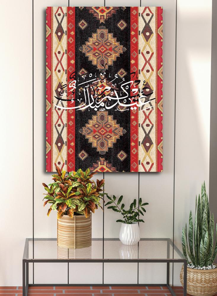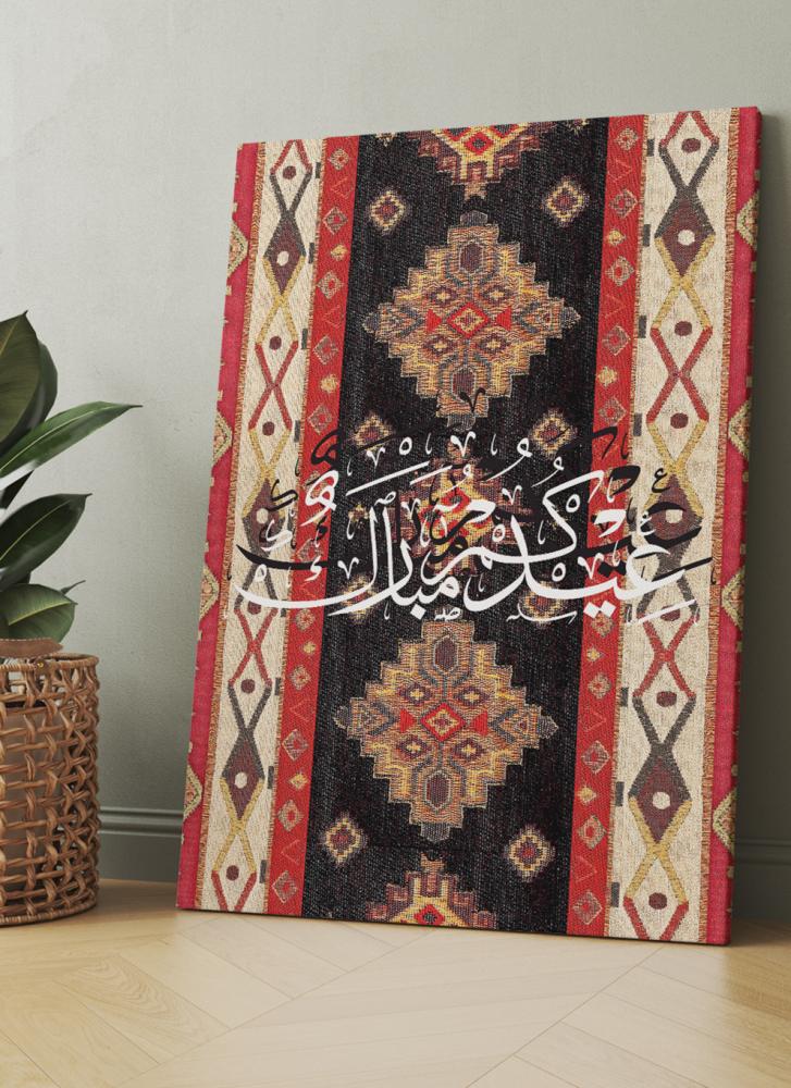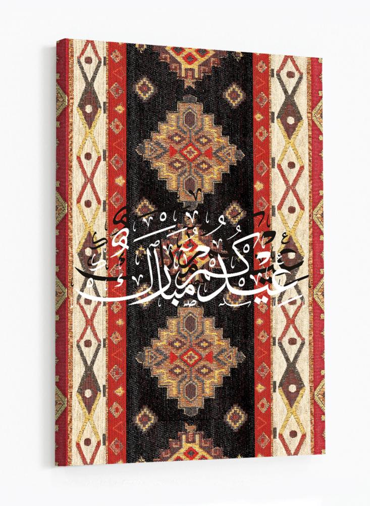 لوحة كانفاس على إطار خشبي بتصميم عيدكم مبارك على نمط سجادة