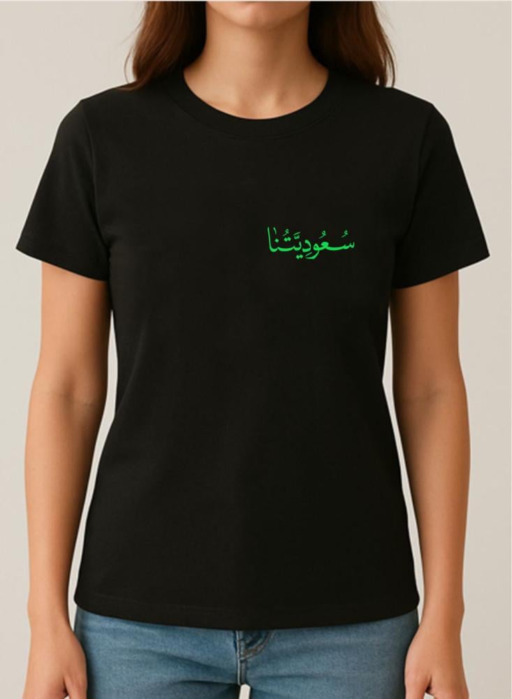 • التيشيرت بتصميم يبرز الانتماء والهوية السعودية للتعبير عن حبنا وفخرنا بوطننا في كل الأوقات.