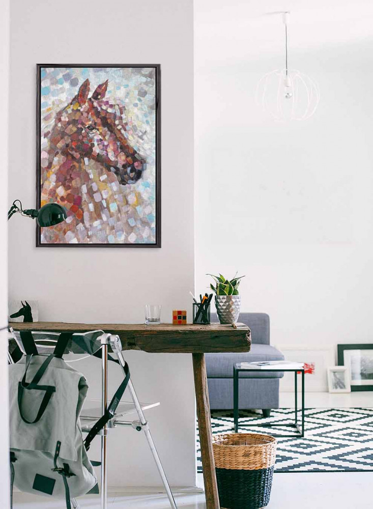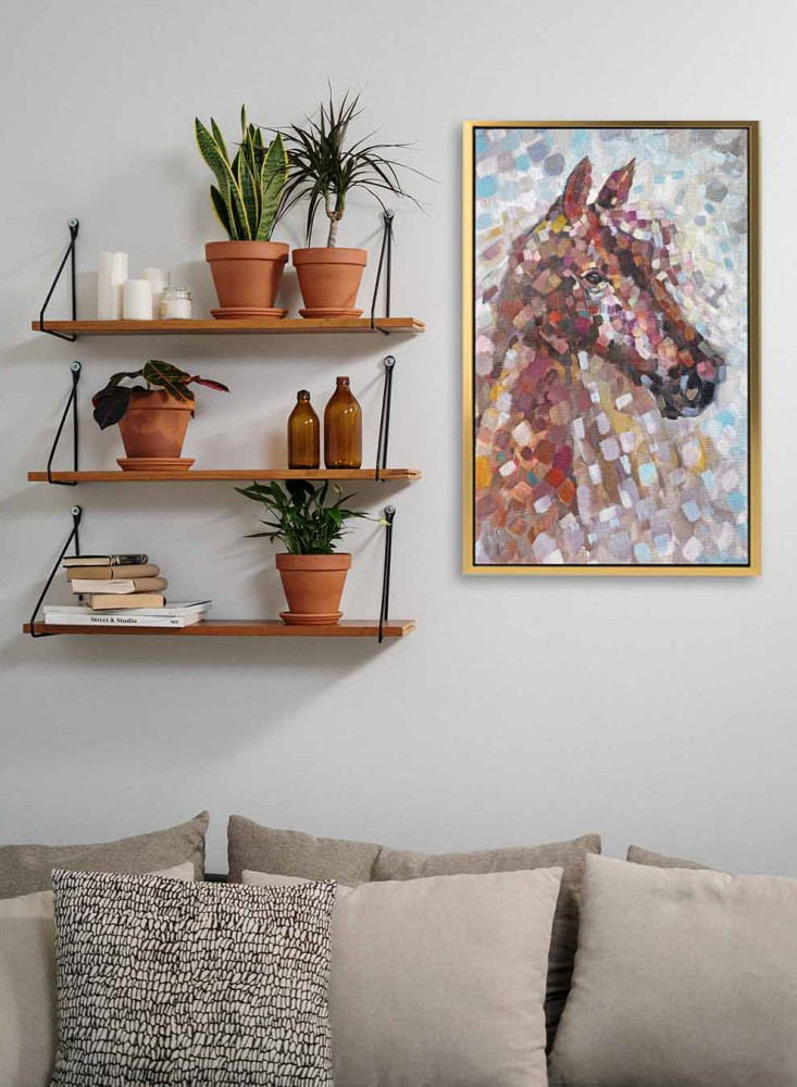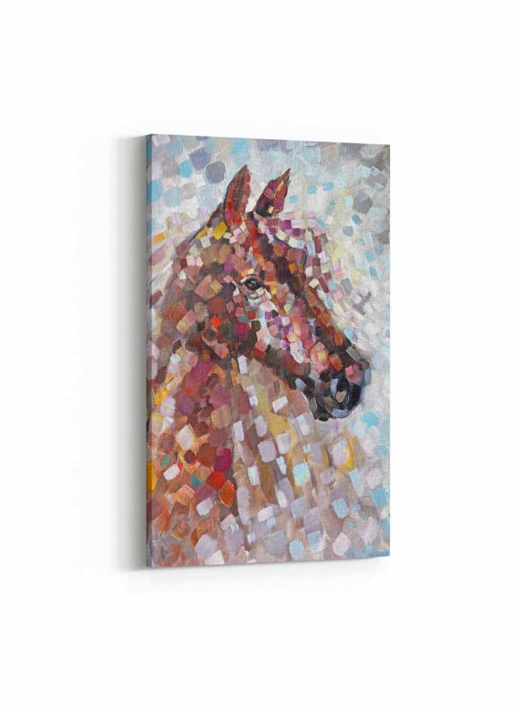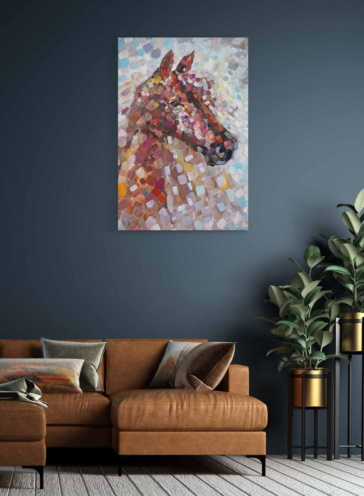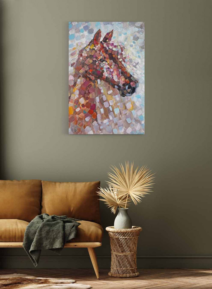 لوحة كانفاس على إطار خشبي، تصميم فن زيتي لحصان ملون ، للمنزل، غرفة المعيشة، المكتب، الديكور