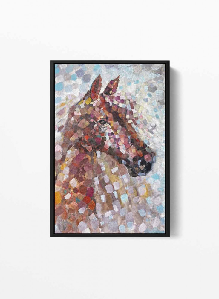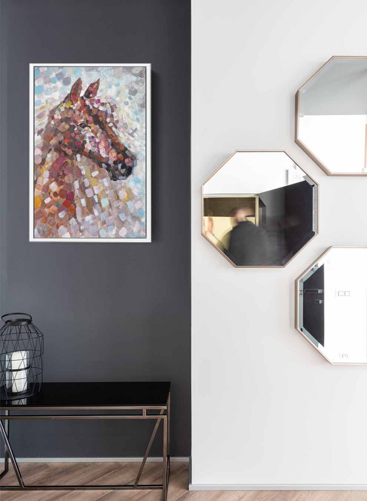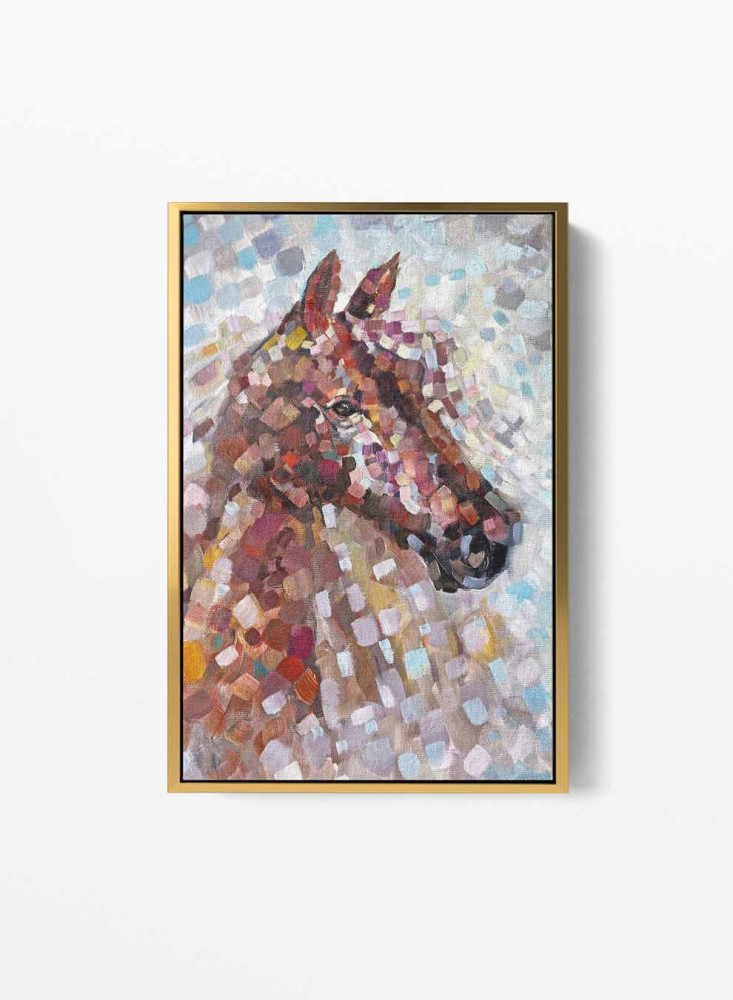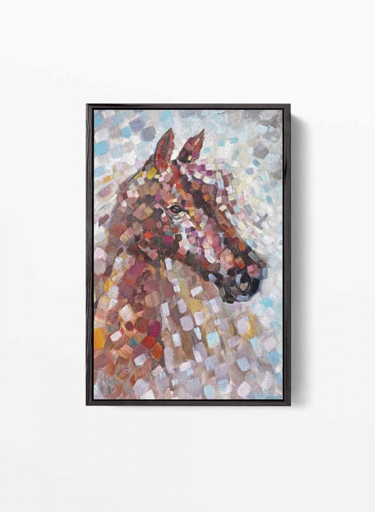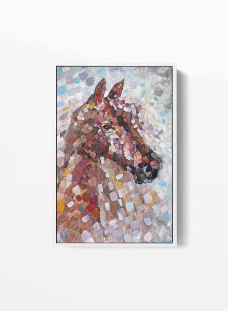لوحة كانفاس على إطار خشبي، تصميم فن زيتي لحصان ملون ، للمنزل، غرفة المعيشة، المكتب، الديكور