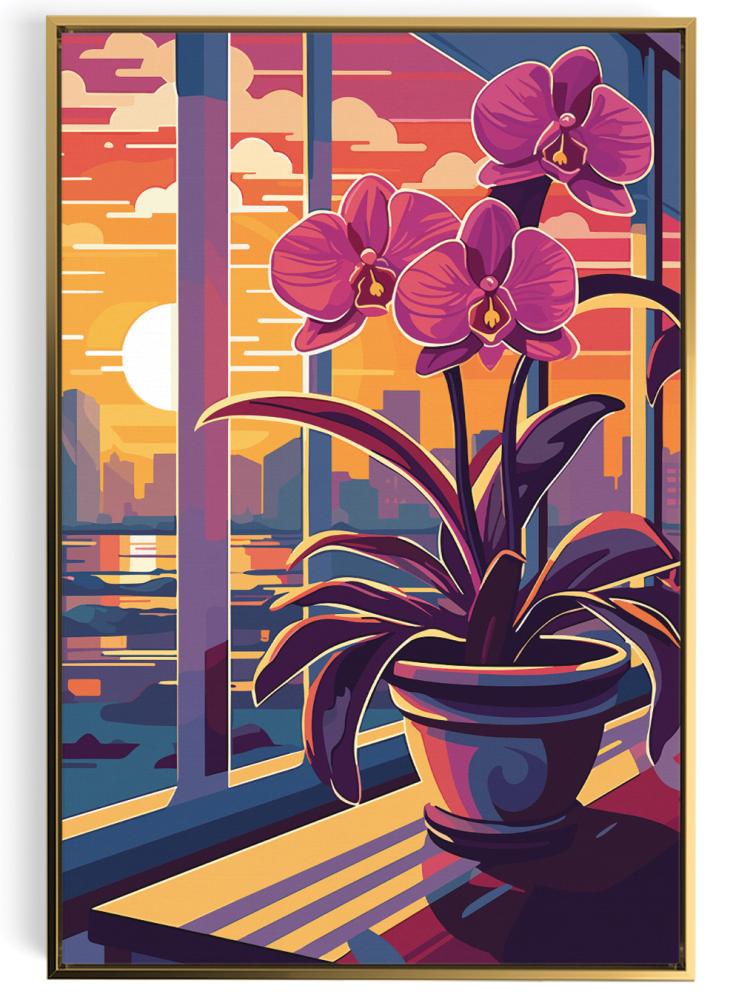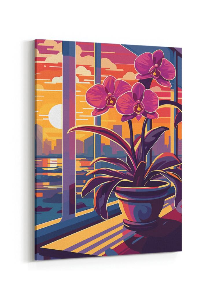 لوحة كانفاس على إطار خشبي بتصميم غروب الشمس من النافذة