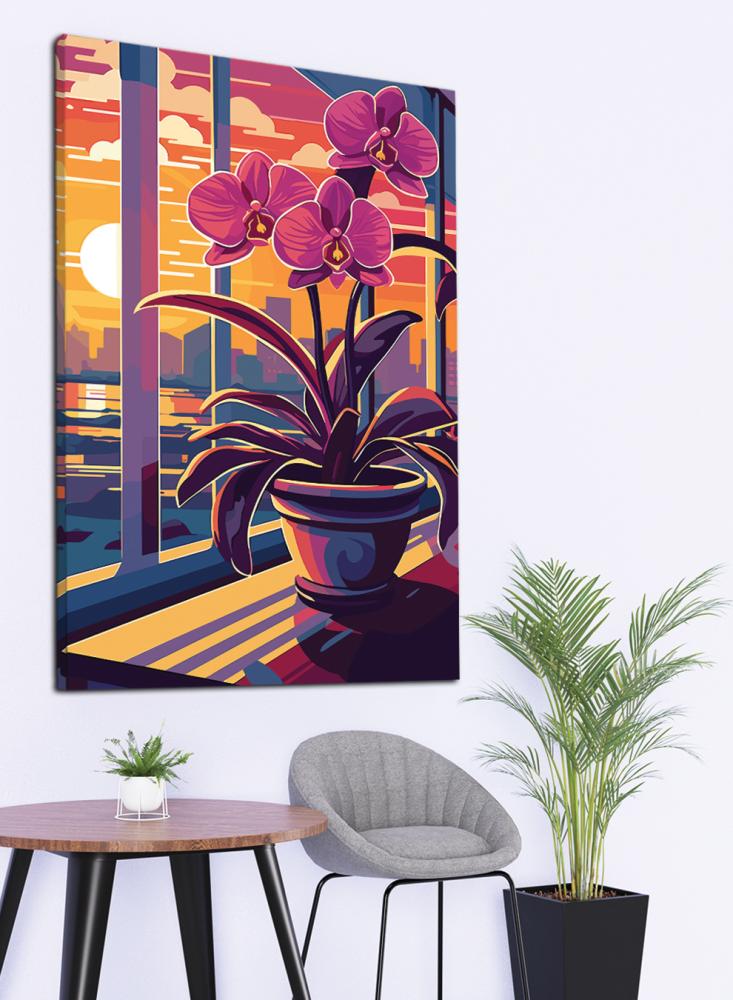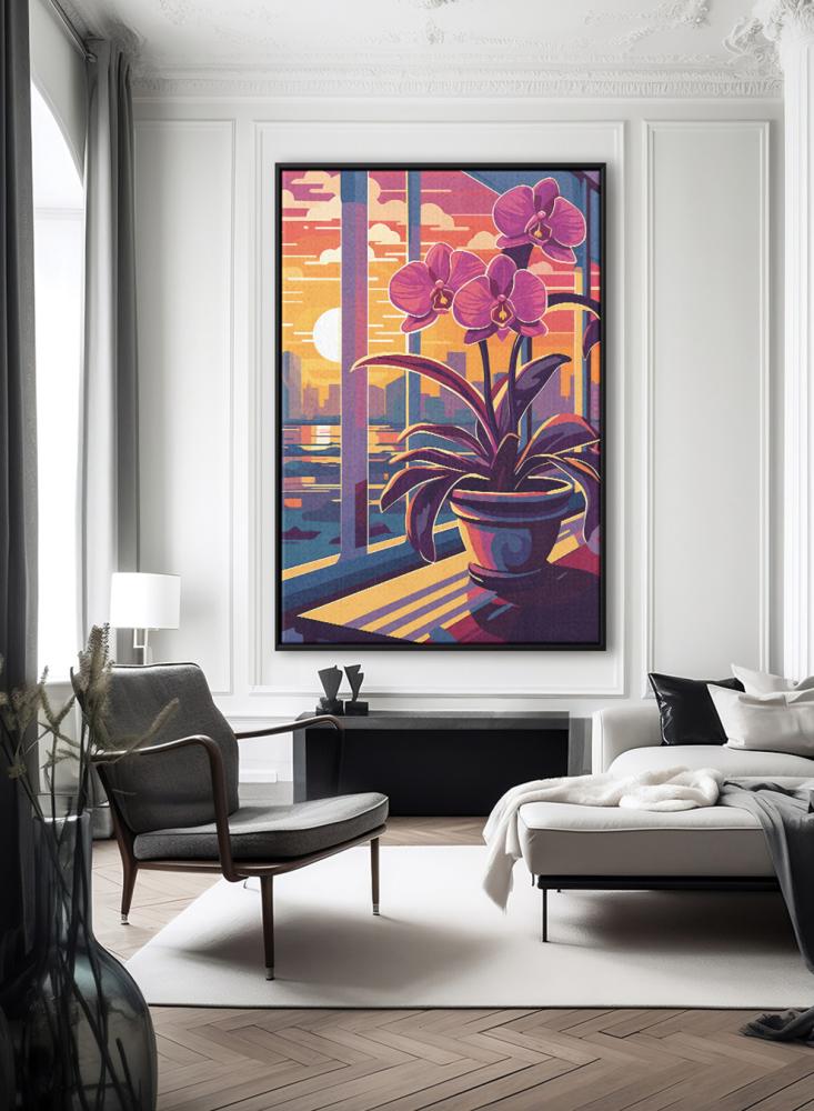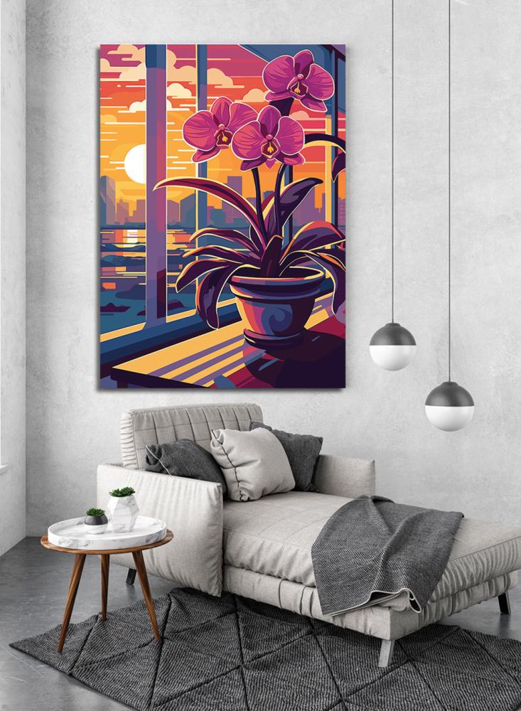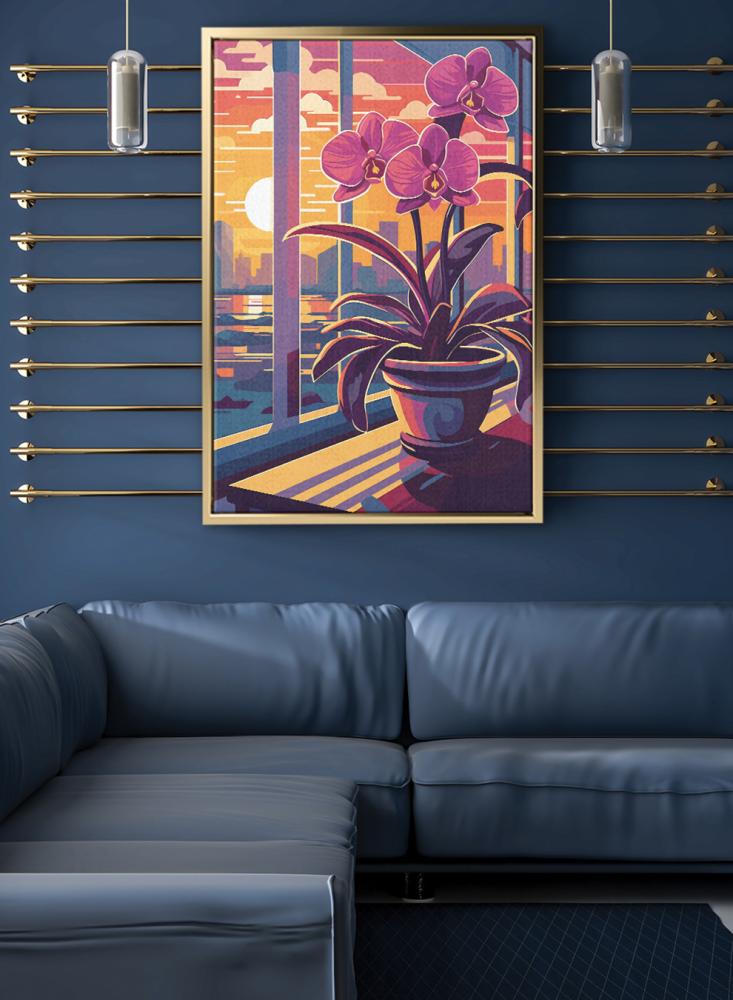 يتم طباعة اللوحة على قماش الكانفاس بأحدث وأفضل التقنيات، وتكون ممدودة بإحكام فوق إطارات خشبية عريضة، مما يضمن أن الكانفاس مشدود وغير متعرج.