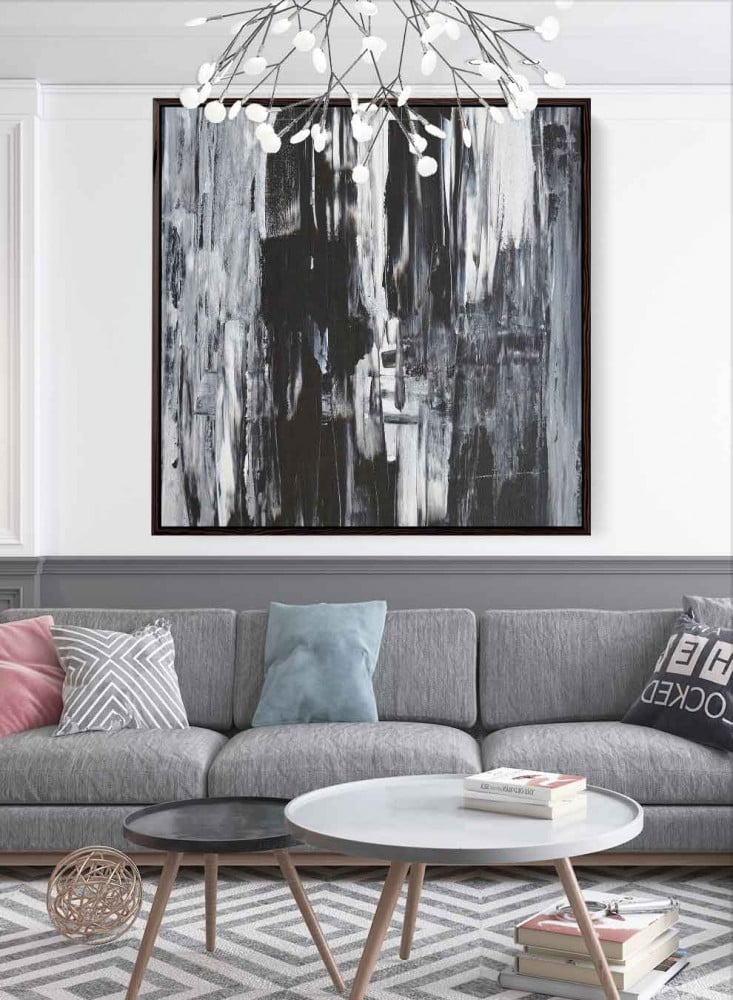 لوحة كانفاس مربع على إطار خشبي، تصميم فن تجريدي، للمنزل، غرفة المعيشة، المكتب، الديكور