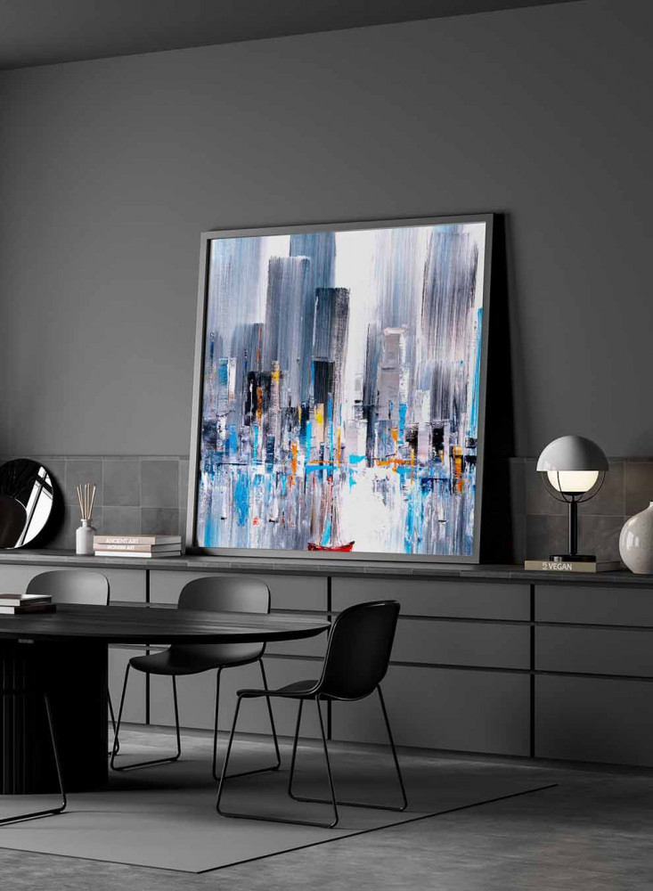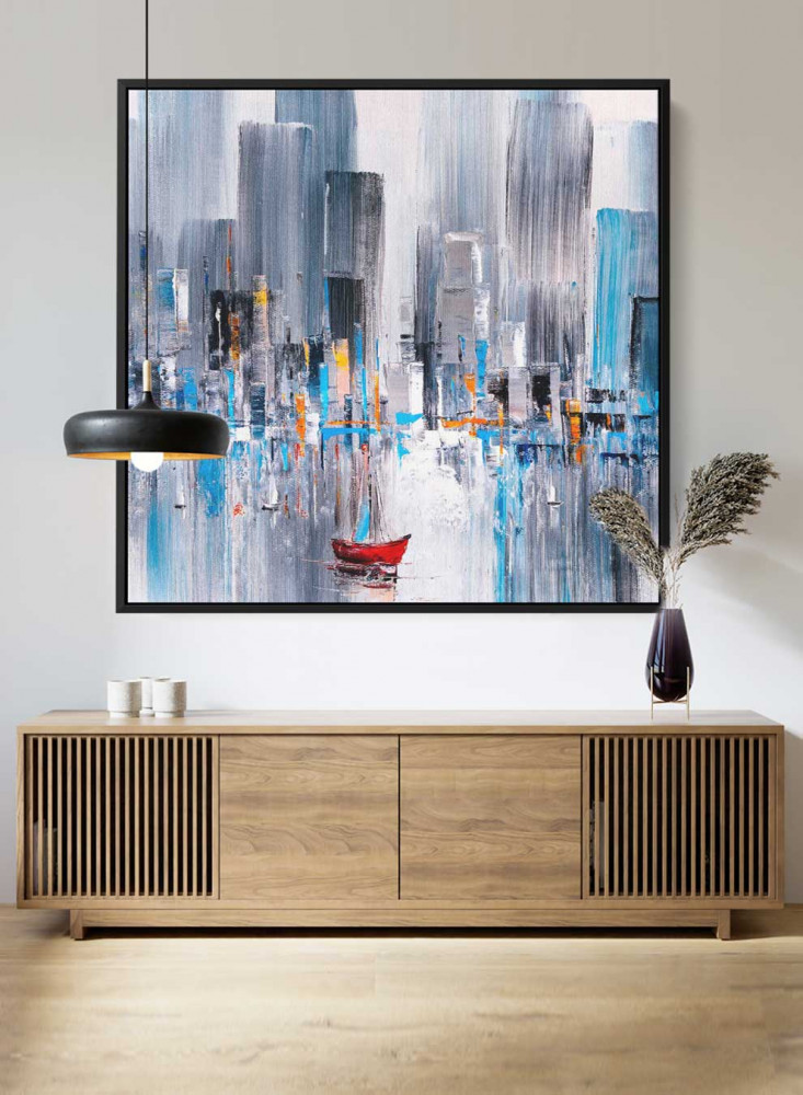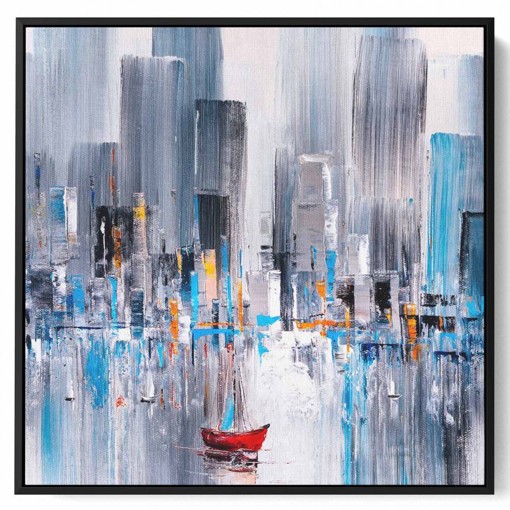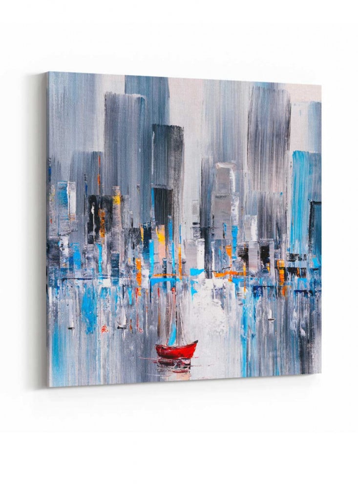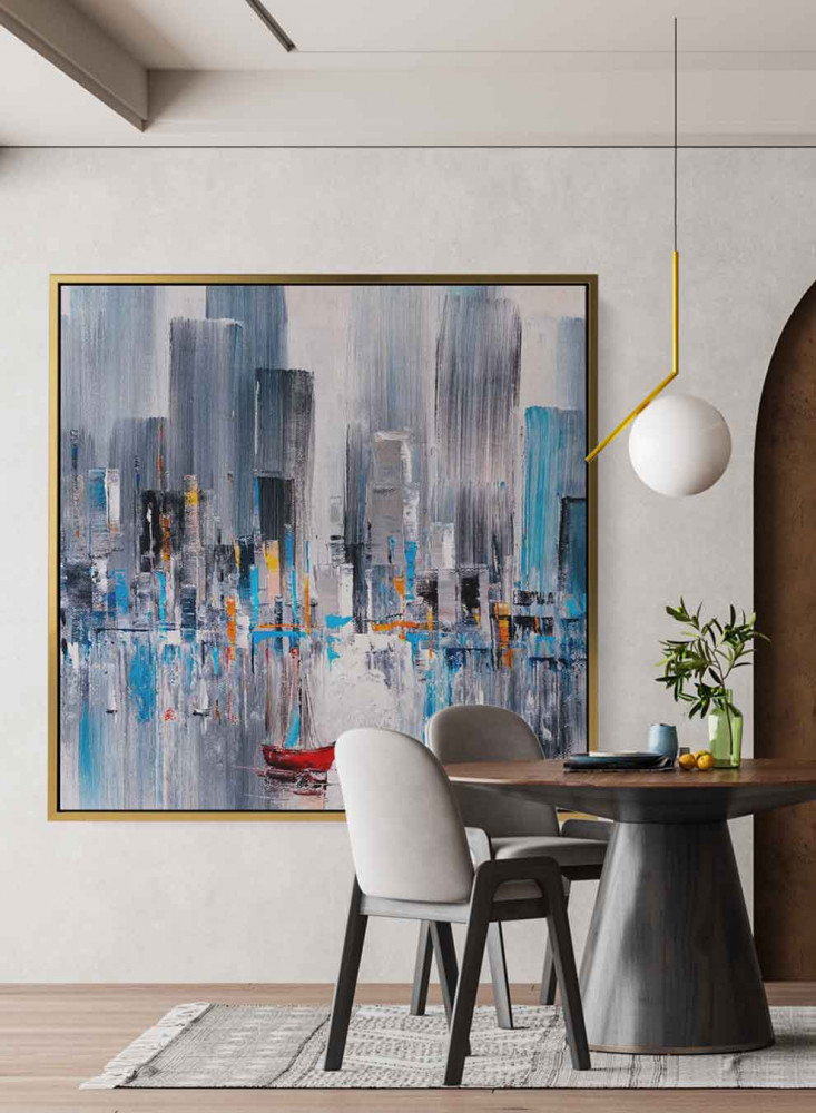 لوحة كانفاس مربع على إطار خشبي، تصميم فن زيتي لمشهد للمدينة ، للمنزل، غرفة المعيشة، المكتب، الديكور