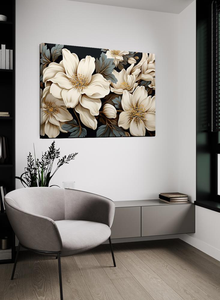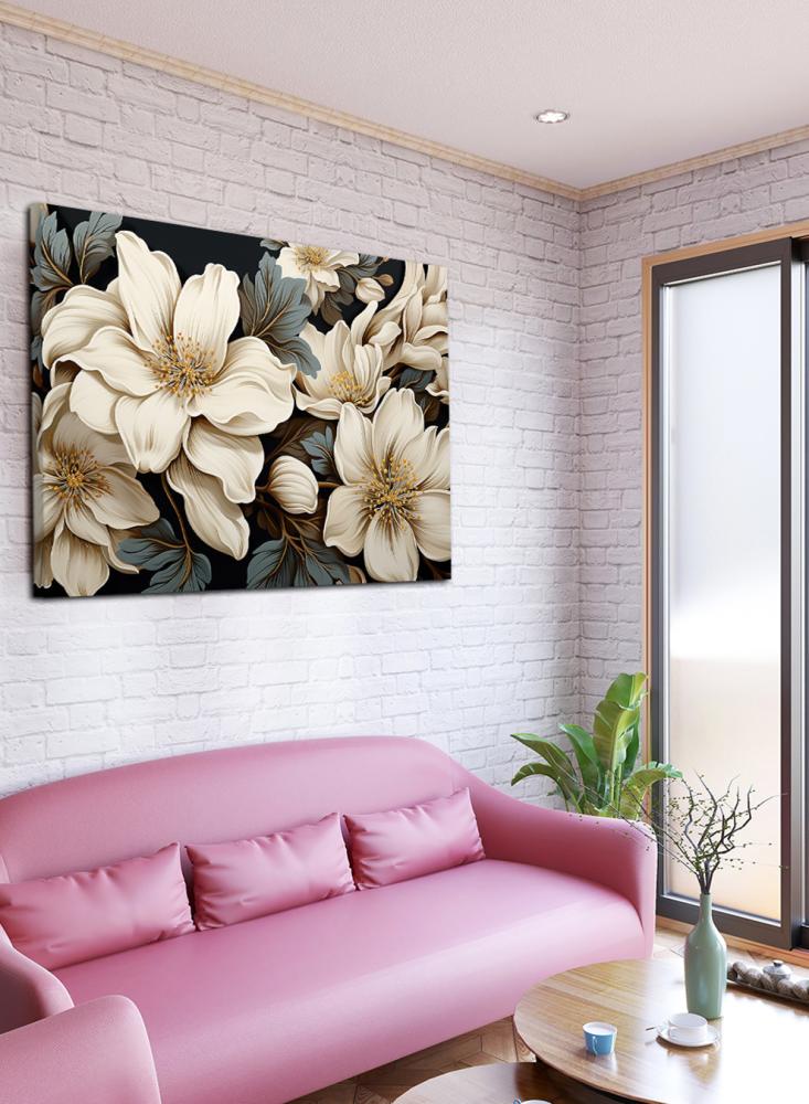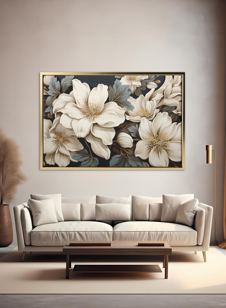 لوحة كانفاس على إطار خشبي بتصميم نمط فني حديث من الزهور