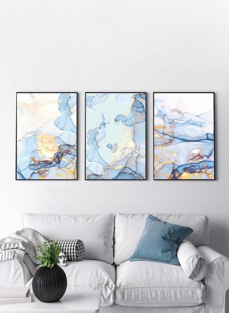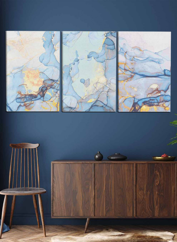 طقم من ٣ لوحات كانفاس على إطار خشبي، تصميم خلفية ملونة، للمنزل، غرفة المعيشة، المكتب، الديكور