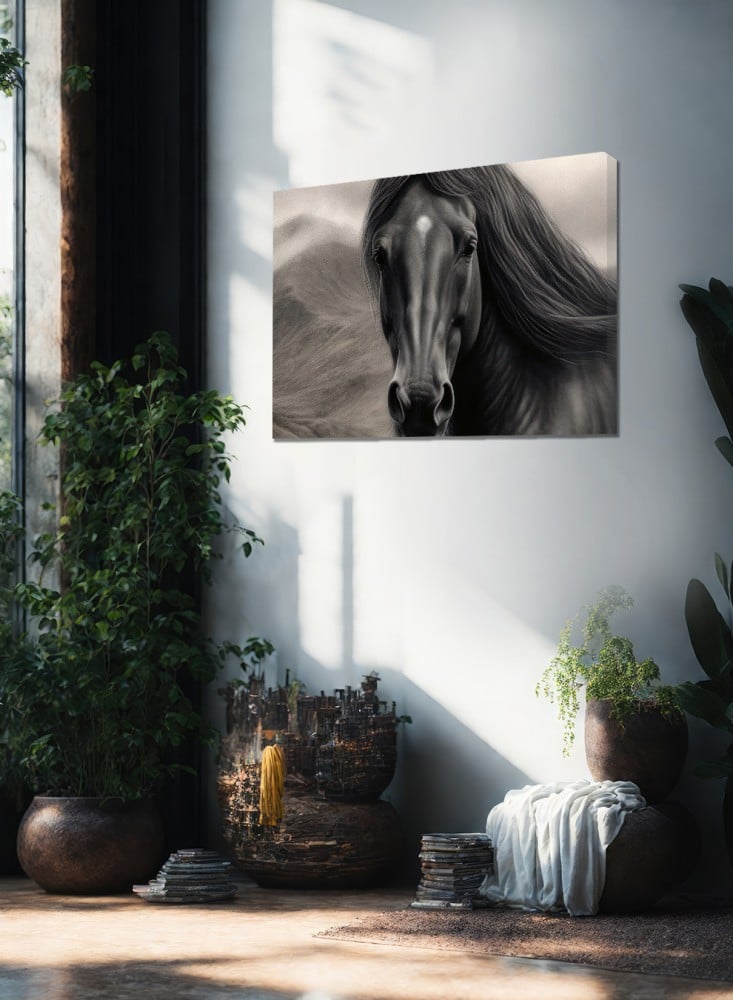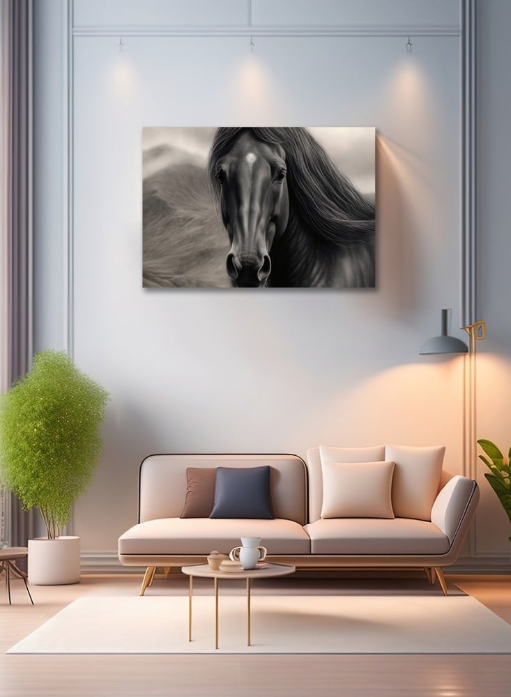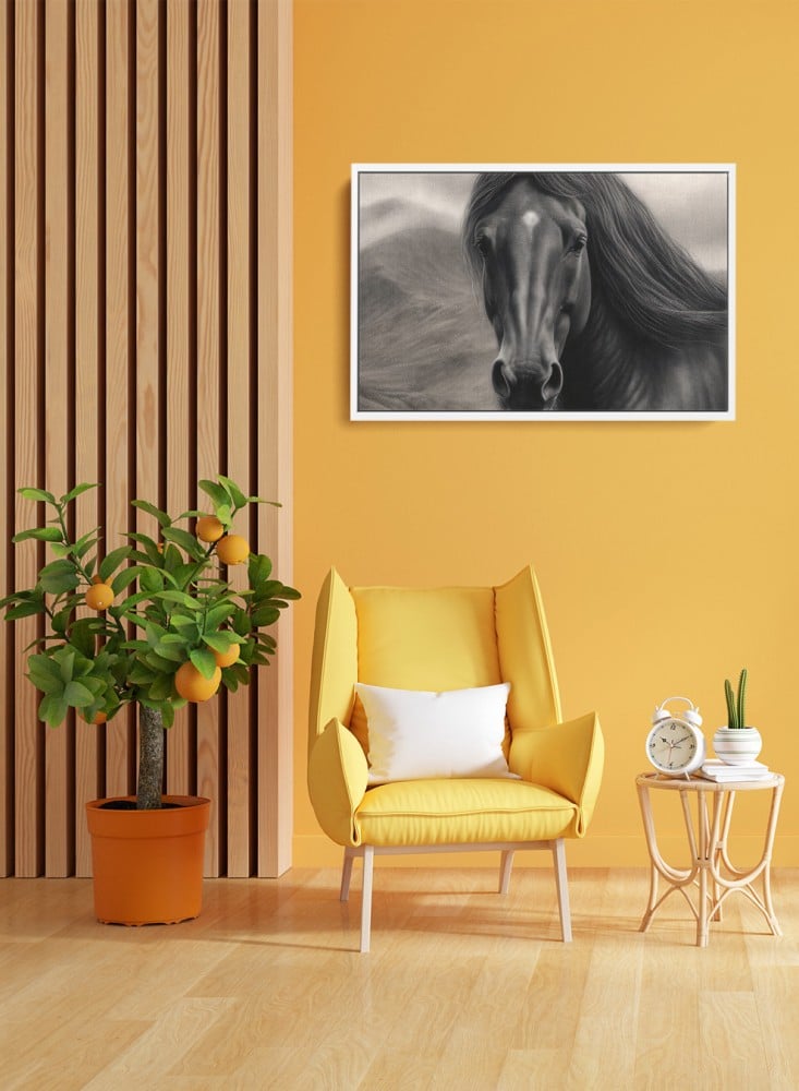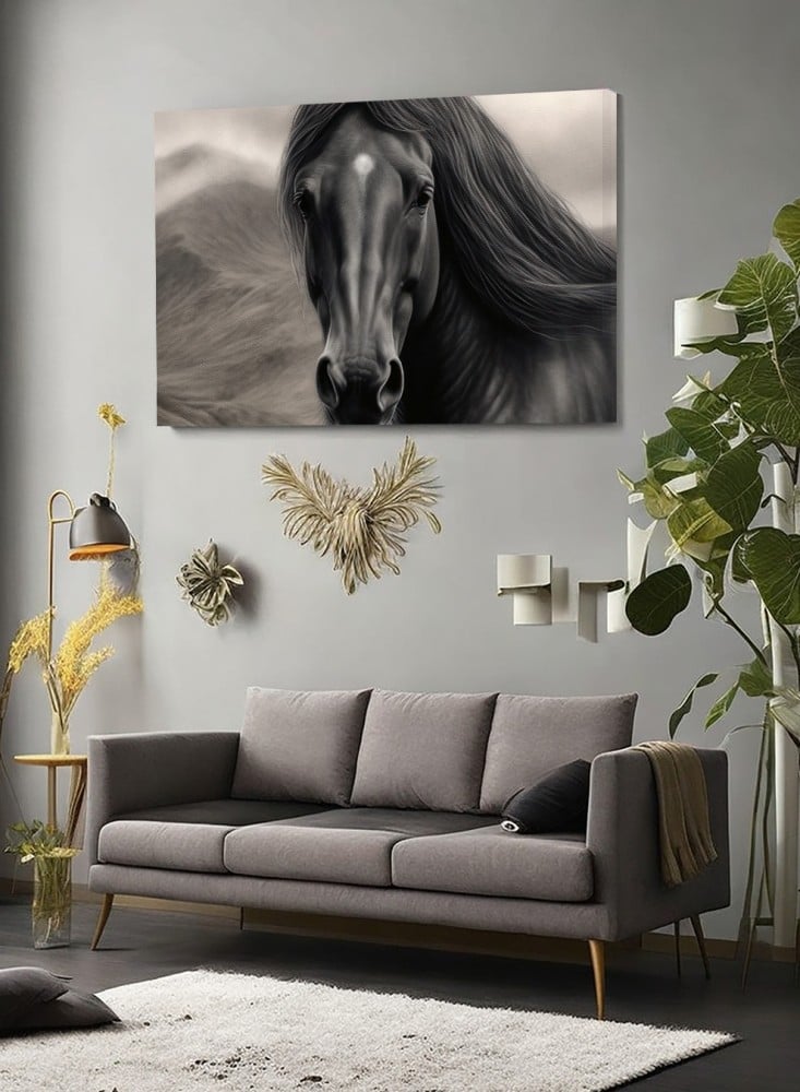 لوحة كانفاس على إطار خشبي بتصميم حصان جامح