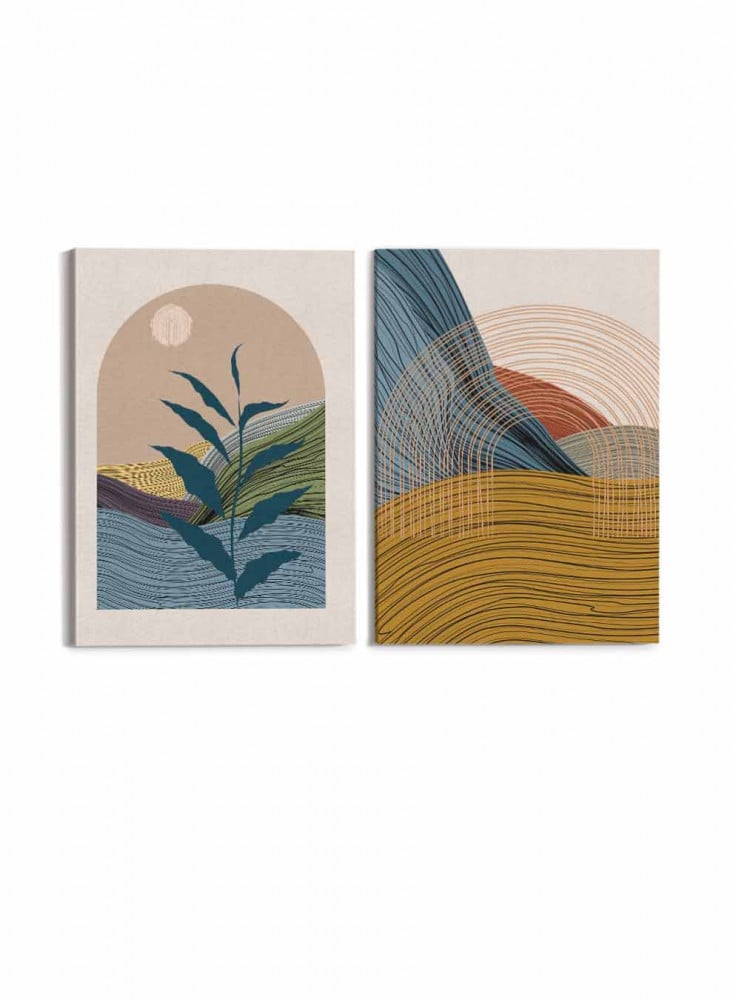 طقم من لوحتين كانفاس على إطار خشبي، تصميم فن تجريدي ملون، للمنزل، غرفة المعيشة، المكتب، الديكور