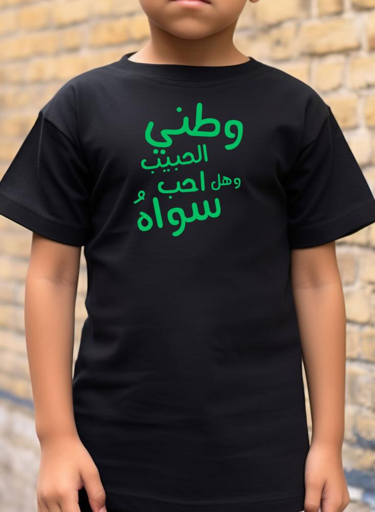 تيشيرت قطن للأطفال مناسب للأولاد والبنات لمناسبة اليوم الوطني السعودي أو للفخر بالانتماء للوطن في كل الأوقات