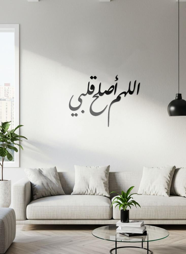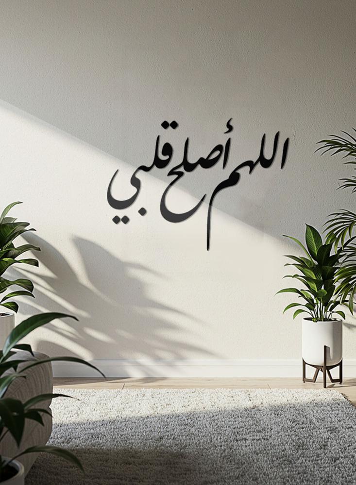 أضف لمسة من الأناقة الروحية إلى منزلك مع هذه اللوحة الجدارية المصنوعة من الأكريليك والمصممة على شكل عبارة اللهم أصلح قلبي بتقنية القطع بالليزر الدقيقة. تتميز بتصميم أنيق من الأكريليك الأسود بسماكة ٣ ملم بمظهراً راقياً يضفي على المكان طابعاً فريداً. مزوّدة بلاصق خلفي قوي لتثبيت سهل وآمن على الجدار دون الحاجة إلى أدوات أو حفر. تأتي هذه اللوحة بمقاس ٦٠ × ٤٤ سم. صنعت بفخر في المملكة العربية السعودية.