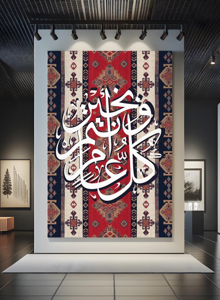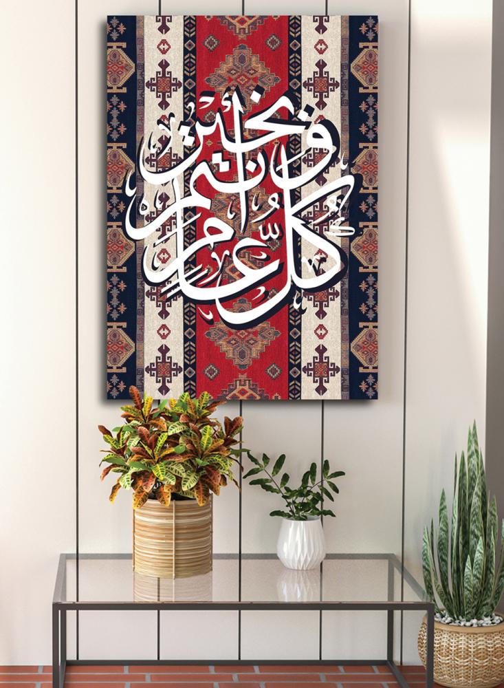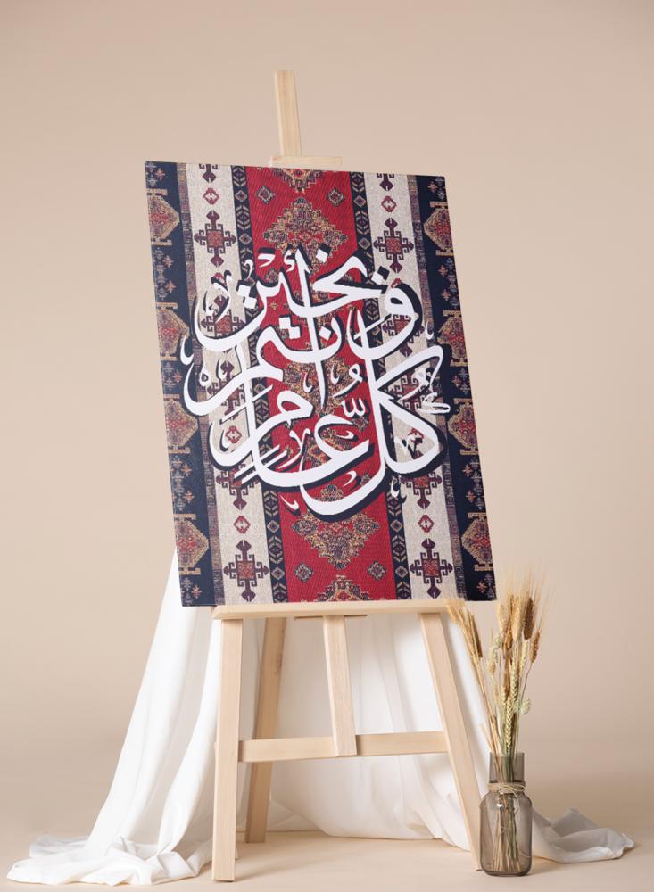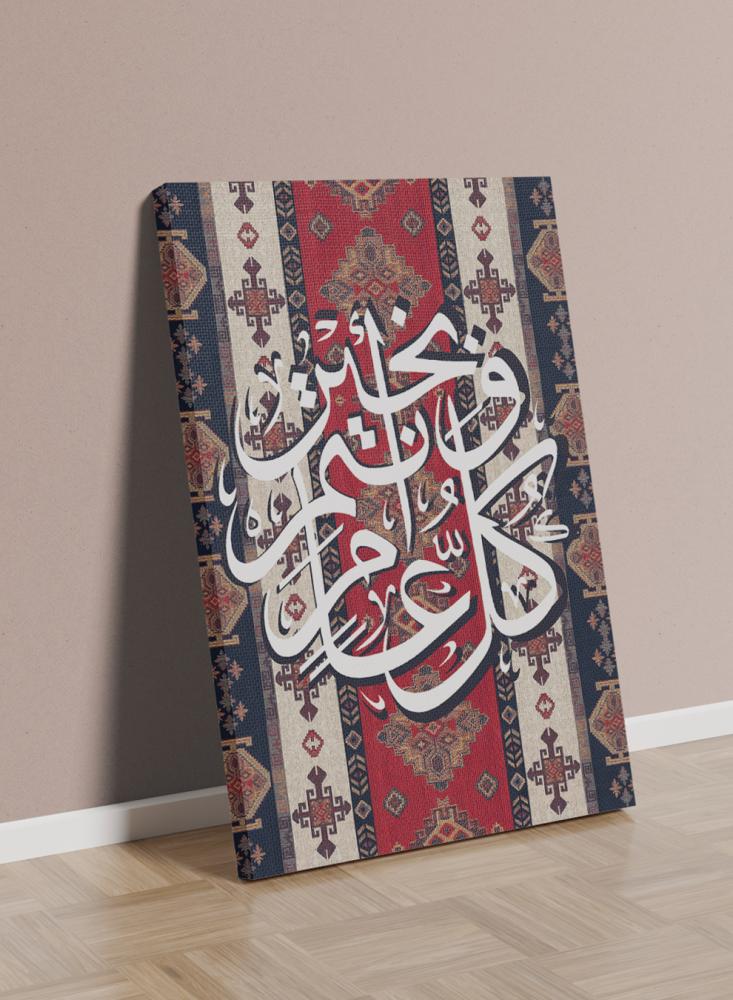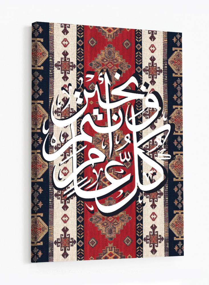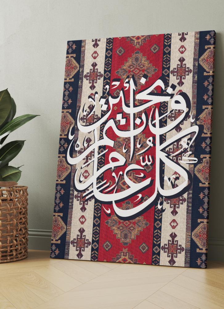 لوحة كانفاس على إطار خشبي بتصميم كل عام وأنتم بخير على نمط سجادة