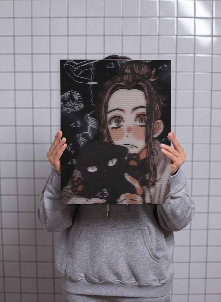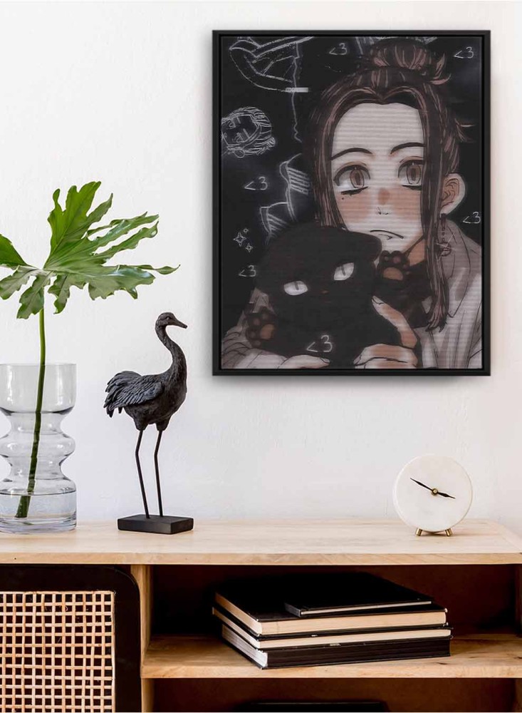 لوحة كانفاس بتصميم كازوتورا هي لوحة جميلة ومميزة من مجموعة لوحات طويكو ريفينجرز في متجر لوحة، احصل عليها الآن واستمتع باقتناء لوحة جميلة في منزلك حيث تتميز بالعديد من التفاصيل مثل الخلفية السوداء وبها خطوط ورسومات باللون الأبيض مما يخلق تباين جميل في الصورة، إلى جانب جمال رسمة كازوتورا والقطة.