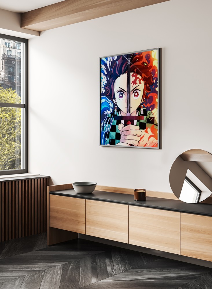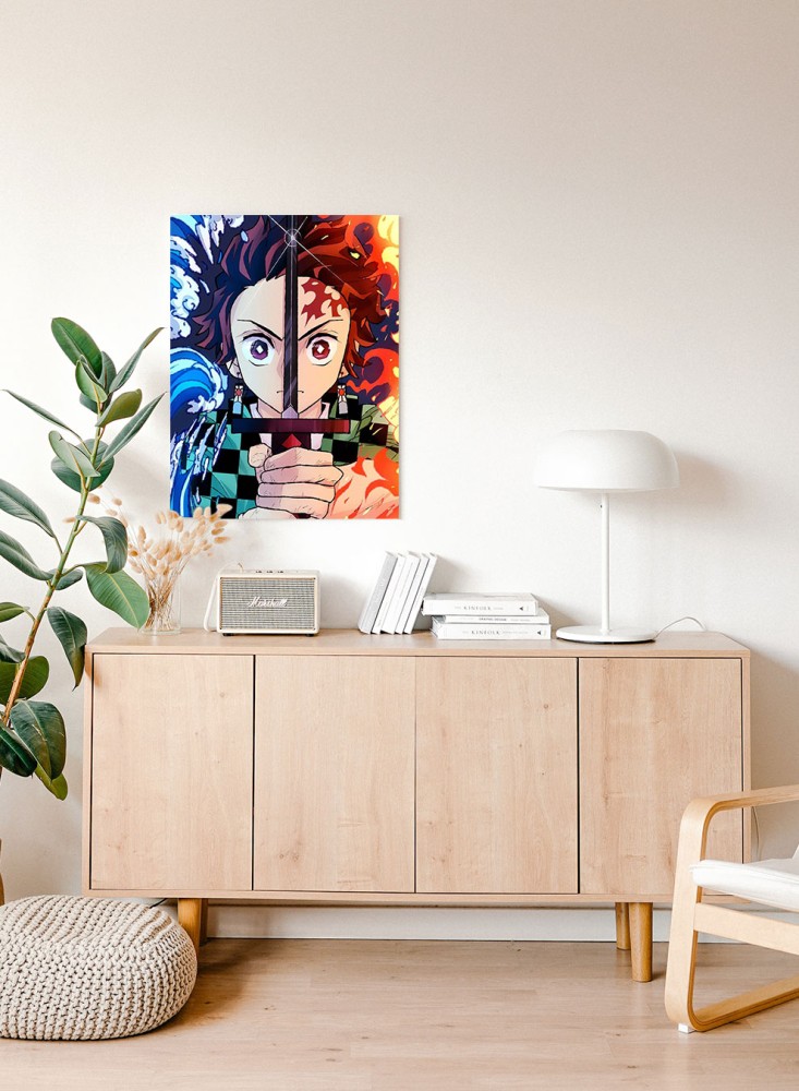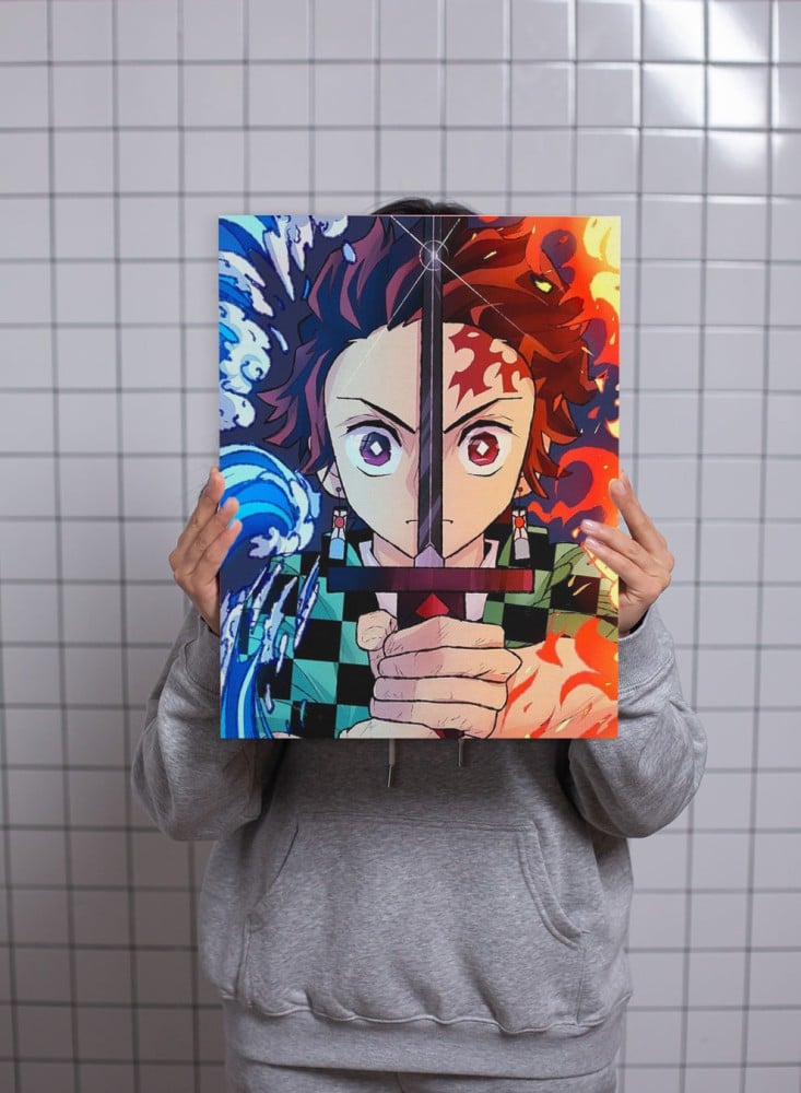 لوحة قاتل الشياطين بتصميم تانجيرو إنها من أفضل لوحات هذه المجموعة الرائعة. لأنها تعبر عن الشخصية الرئيسية في هذه السلسلة وهو تانجيرو الذي يحارب الشياطين ويحاول مساعدة اخته لترجع إلى طبيعتها البشرية بعد أن تحولت إلى شيطانة.