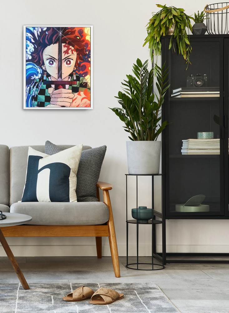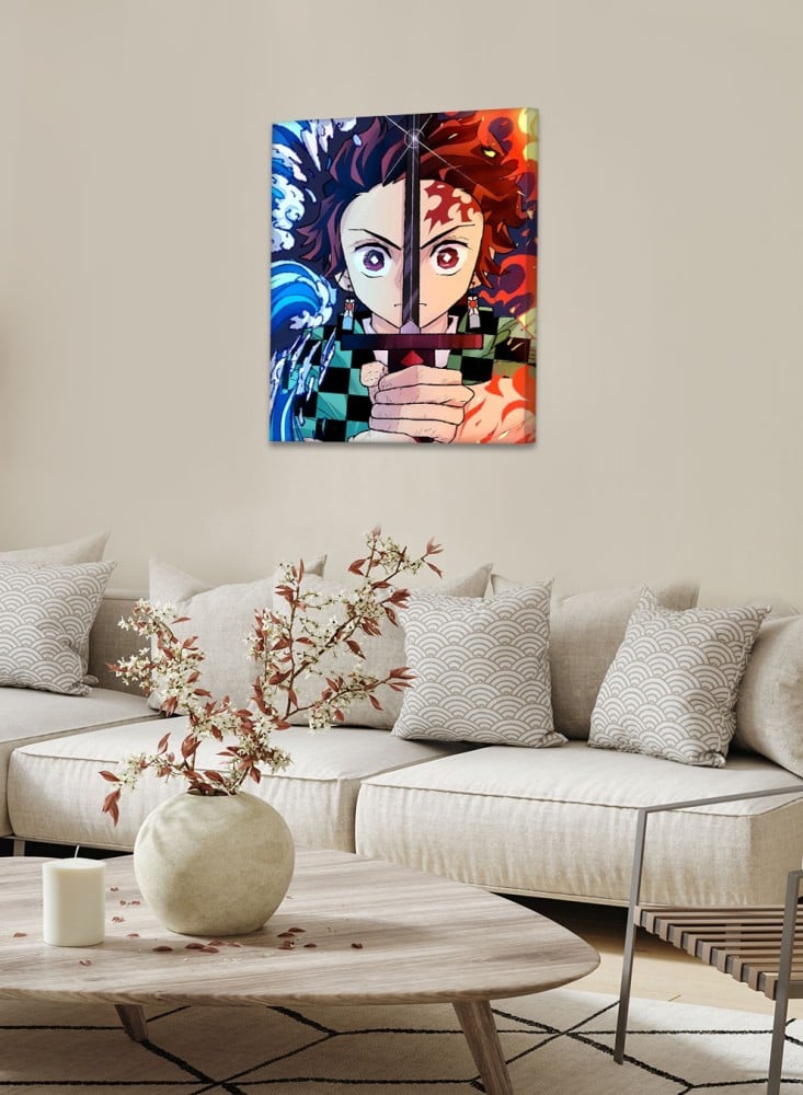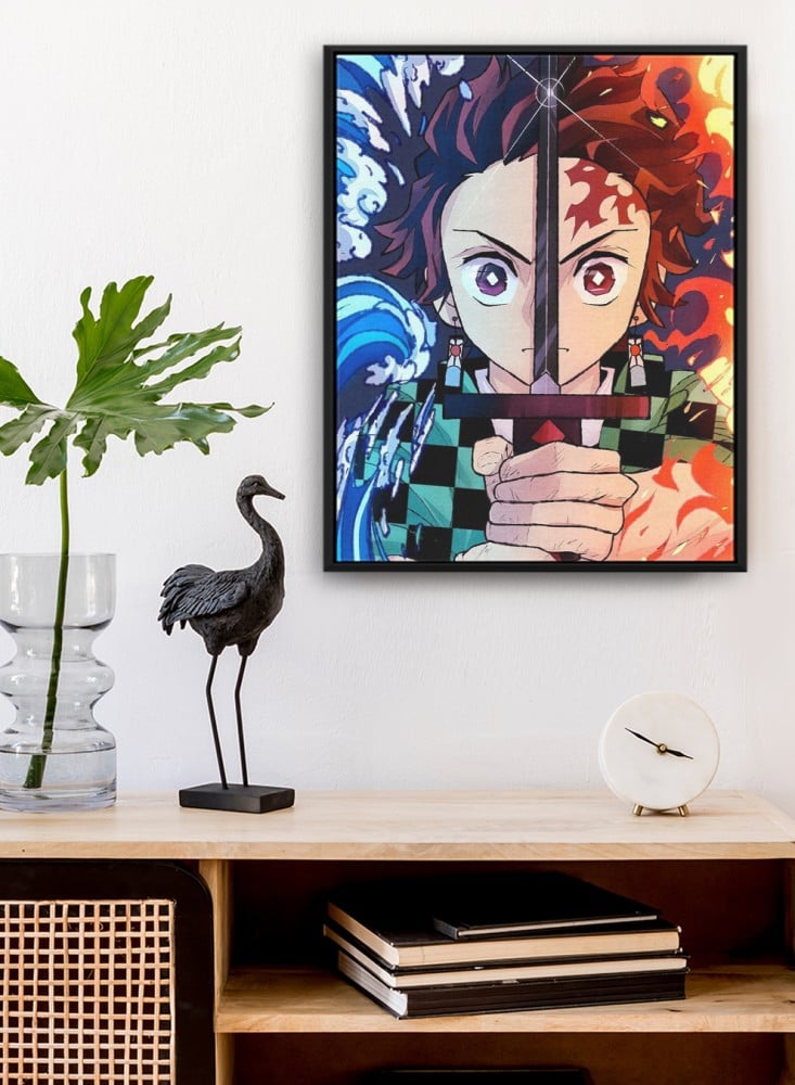 - لوحة قاتل الشياطين مصنوعة من قماش الكانفاس عالي الجودة والمشدود على الإطار الخشبي عالي الجودة لضمان عدم وجود أي تشوه وتعرف في القماش.