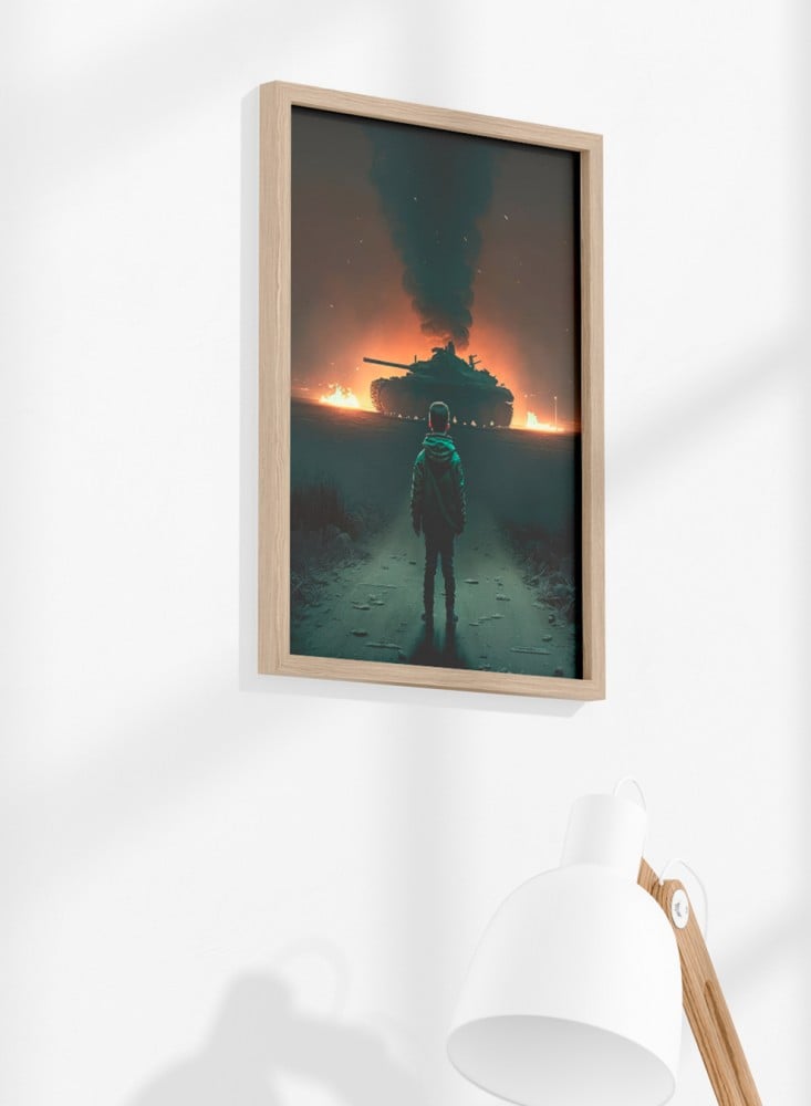 - لوحة جدارية بوستر بإطار بتصميم طفل فلسطيني في مواجهة العدو.
