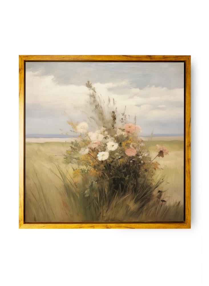 لوحة كانفاس على إطار خشبي بإطار خارجي باللون الخشبي وتصميم منظر كلاسيكي لورود ملونة