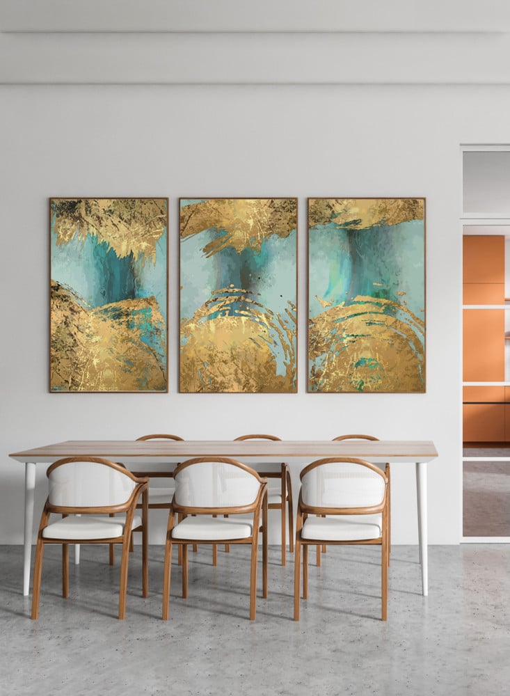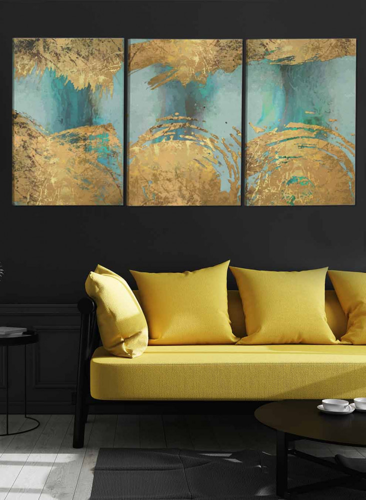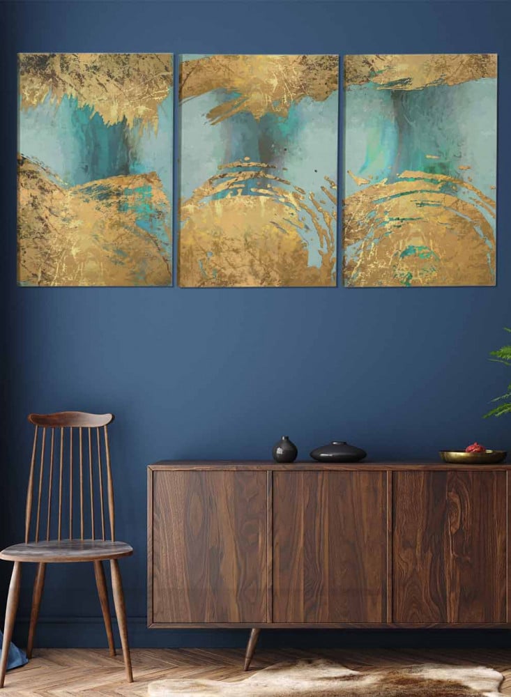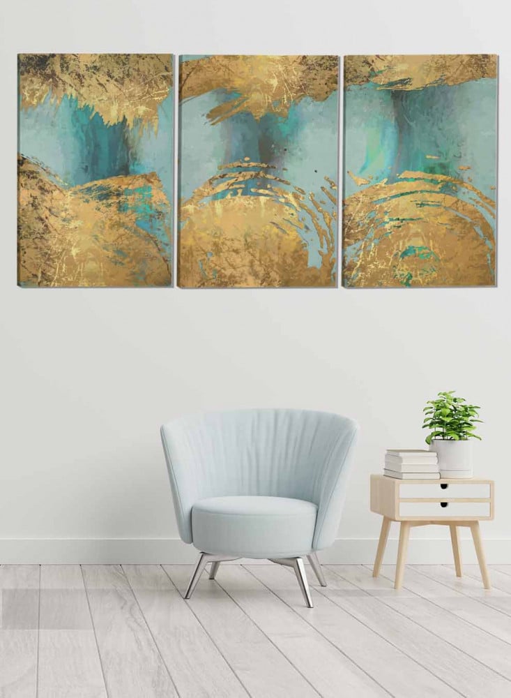طقم من ٣ لوحات كانفاس على إطار خشبي، تصميم زيتي تجريدي، للمنزل، غرفة المعيشة، المكتب، الديكور