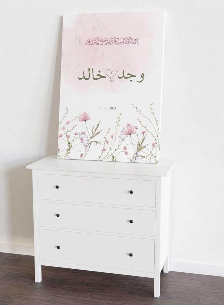 تُعد لوحات زواج المصنوعة من الكانفاس خيارًا شائعًا لدى من يبحث عن ذكرى تدوم لهذا الحدث المميز. لوحة الكانفاس من متجر لوحة تتميز بتصميم أنيق خاص يشمل أسماء العروسين وتاريخ الزواج ودعاء "بارك الله لكما"، مع تفصيل القلب والورود لخلق جو من الدفء والرومانسية. الجمع بين المتانة وإمكانية التخصيص يوفر للمستخدم تحفة فنية تعكس طابع الاحتفال وسعادته.