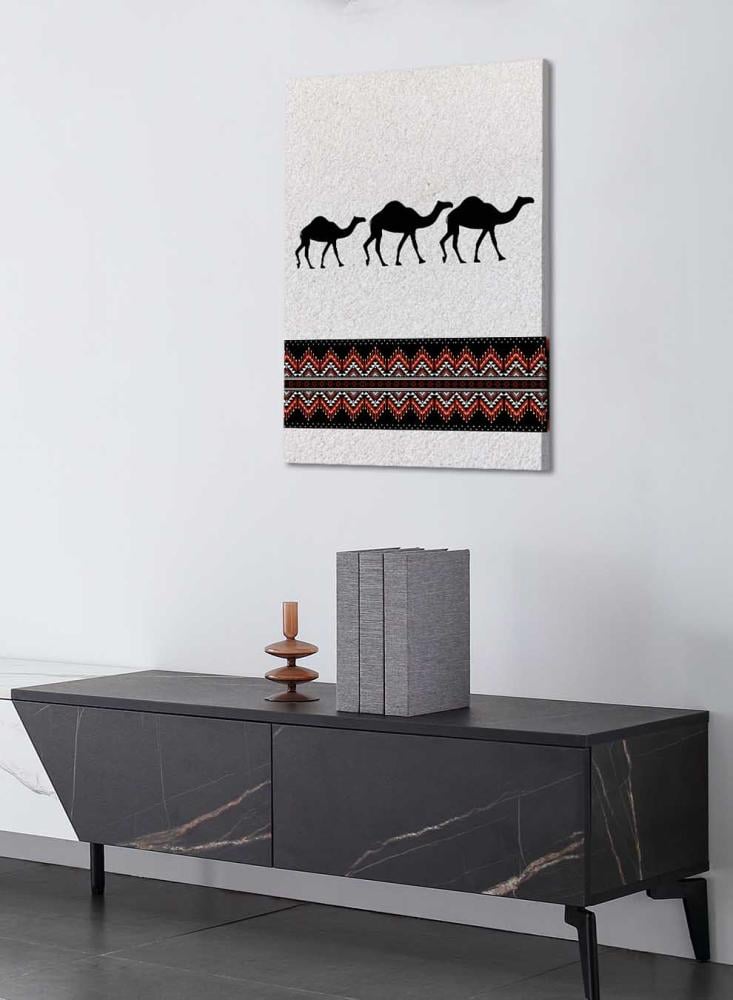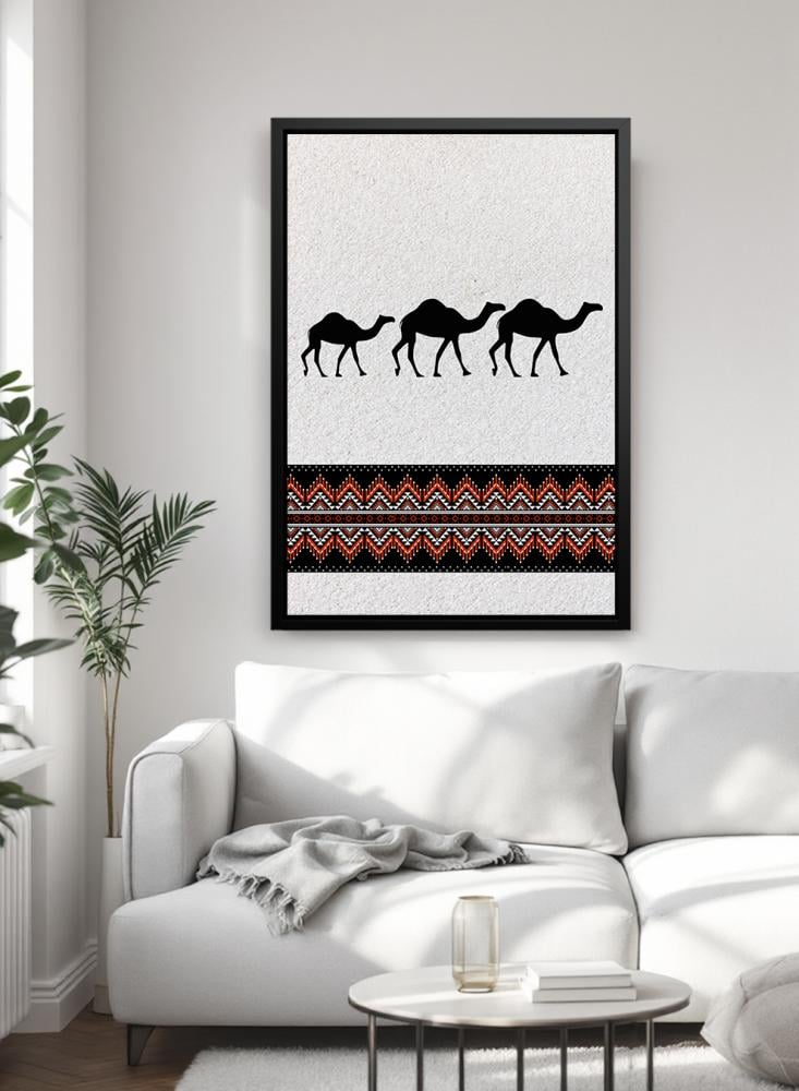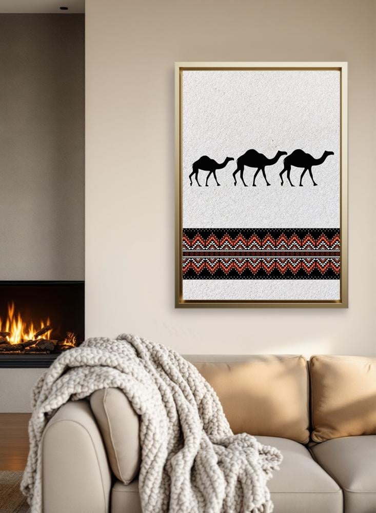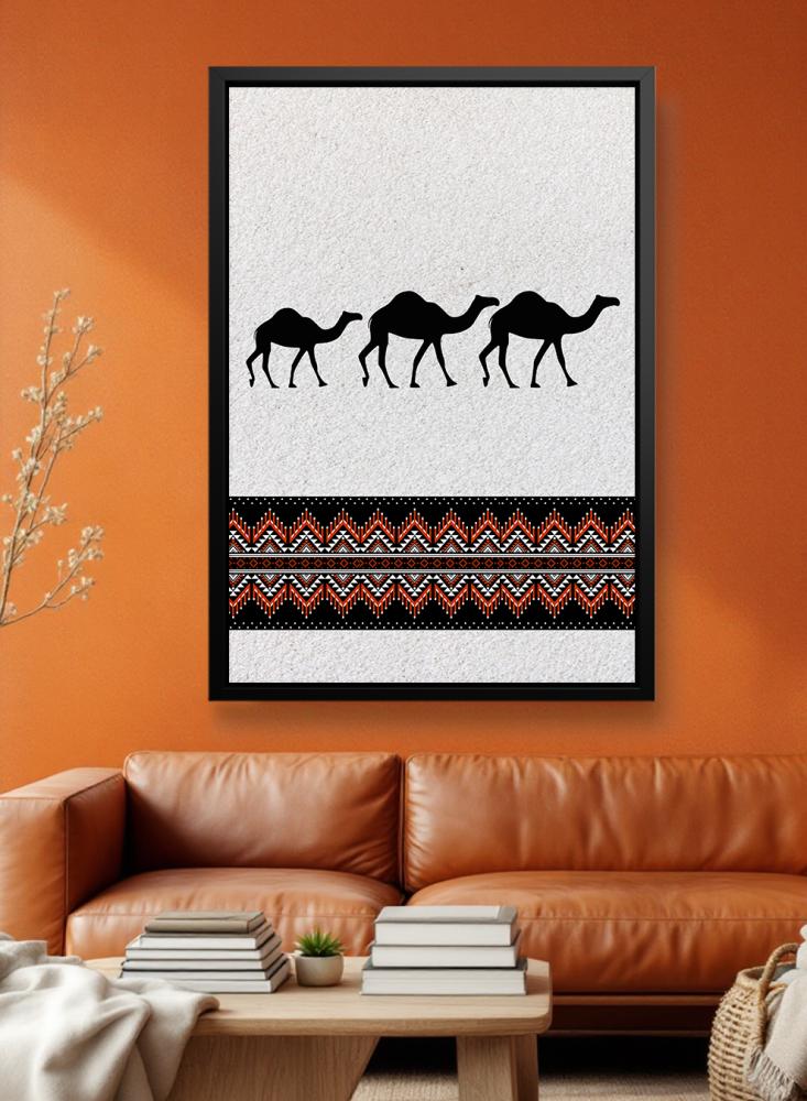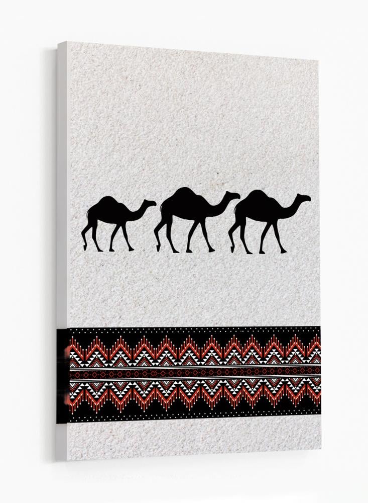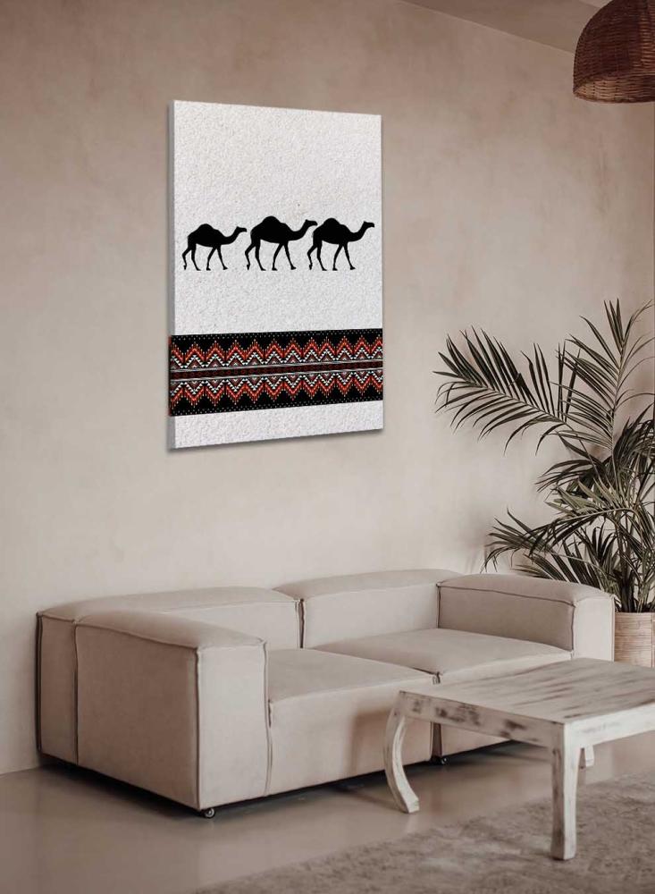 لوحة كانفاس على إطار خشبي تجسّد جِمال بتصميم مستوحى من الطابع السعودي