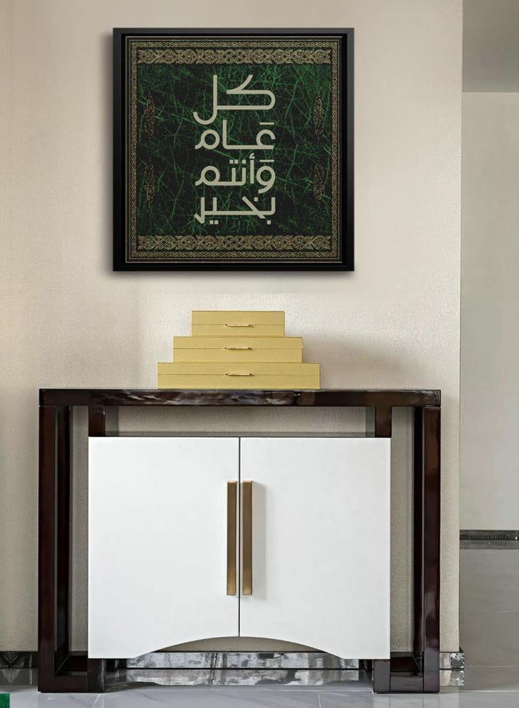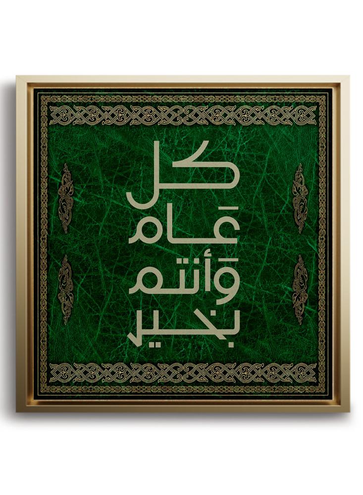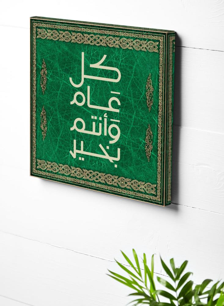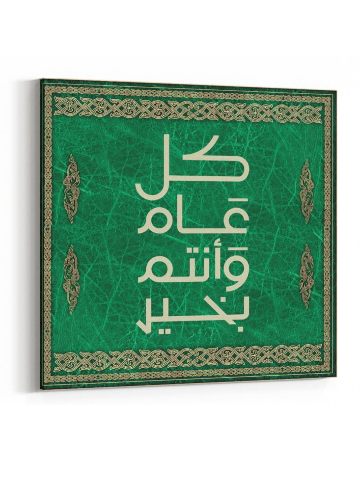 لوحة كانفاس على إطار خشبي للاحتفال برمضان والعيد بتصميم كل عام وأنتم بخير