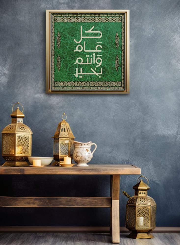 تلائم لوحة كانفاس تهنئة رمضان والعيد من لوحة مختلف المساحات بفضل جودة تصنيعها وجمال تصميمها العربي العصري. تأتي العبارة التقليدية "كل عام وأنتم بخير" مطبوعة بدقة على القماش المشدود فوق إطار خشبي قوي، ما يوفر استقراراً ومتانة طويلة الأمد. ألوان الطباعة مقاومة للبهتان وتبقى حيوية مهما طال الزمن، بينما تتيح خيارات الحجم والتخصيص بالألوان مرونة تناسب احتياجات المنازل أو أماكن العمل في موسم الأعياد.