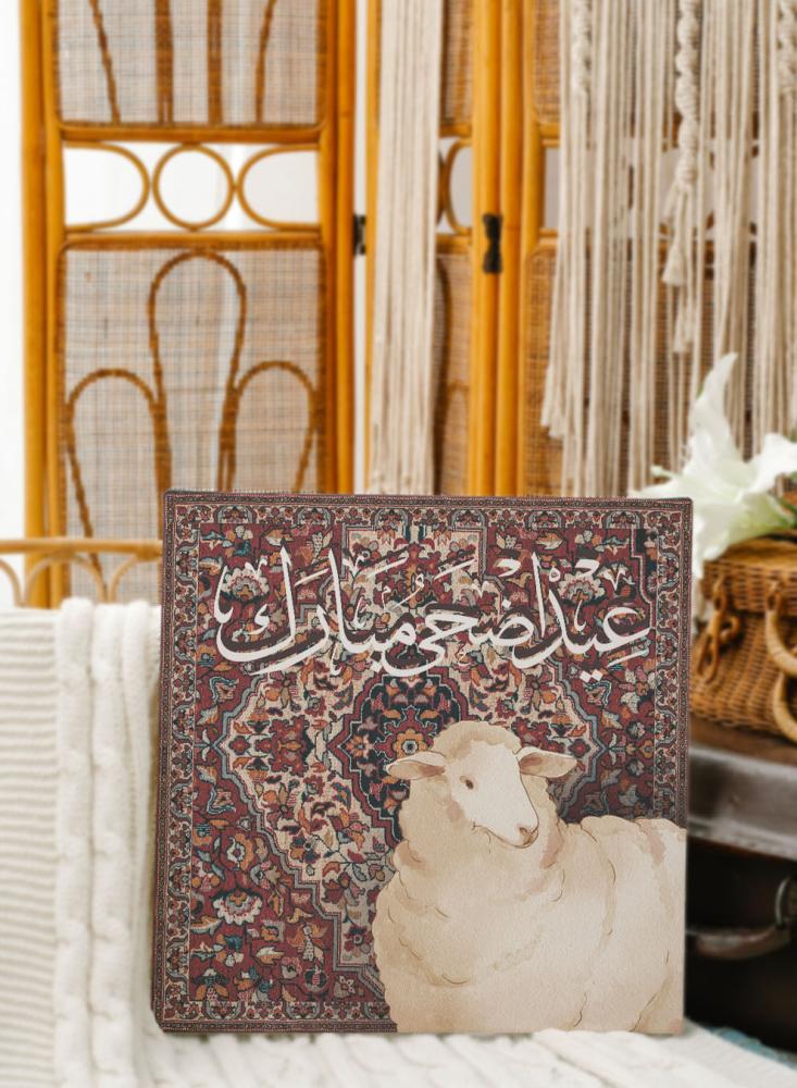 - التصميم: مستوحى من عيد الأضحى برسم خروف وسجادة بأبعاد دقيقة.