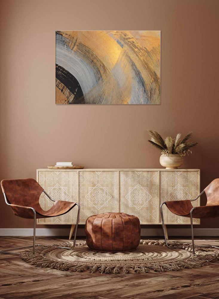 تأتي اللوحات الترابية بألوان مختلفة ممتعة ومثيرة للإبداع، حيث يمكن استخدامها مع أي ديكور في منزلك، إنها بالتأكيد تضفى لمسة ساحرة وجذابة لا يضاهيها أي شئ آخر. لخلق لوحات فنية رائعة ومميزة تجعلك تشعر وكأنك في متحف فني احصل على لوحات بالوان ترابية بتصميم فن زيتي فخم بمنظر أفقي من لوحة.