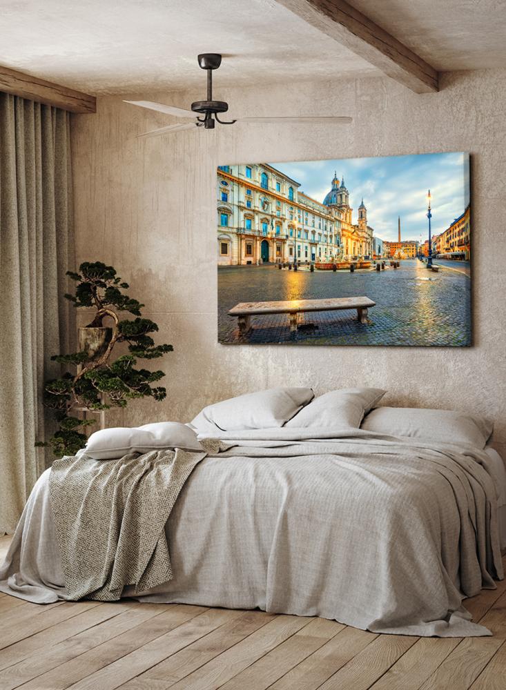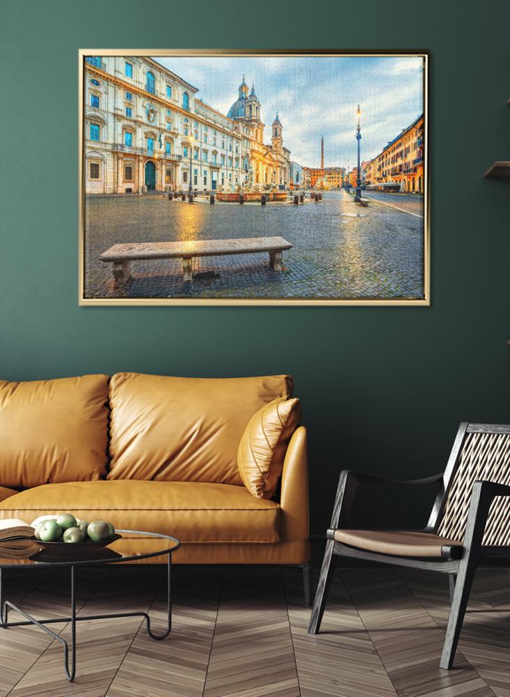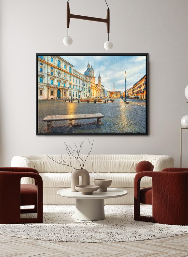 لوحة ساحه نافونا من متجر لوحة تقدم صورة تعكس روعة التفاصيل المعمارية والإحساس التاريخي لمدينة روما، مطبوعة بدقة عالية على قماش متين. هذا العمل الفني يأتي على إطار خشبي واسع يحافظ على ثبات اللوحة ويمنع تقوس القماش. التقنية المستخدمة في الطباعة تمنح العمل وضوح الألوان والتفاصيل، لتبقى الصورة نابضة بالحياة على الجدار.