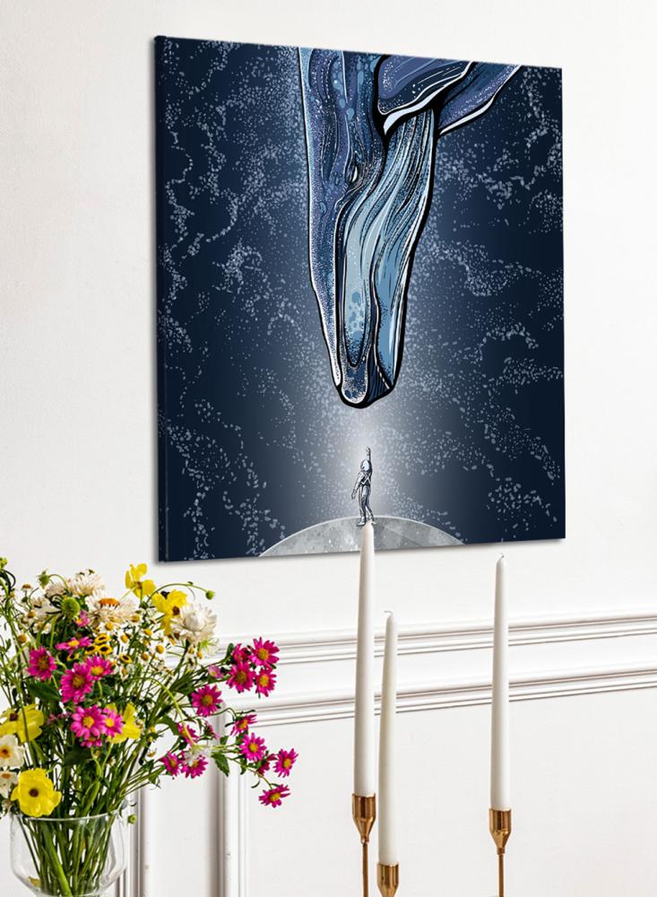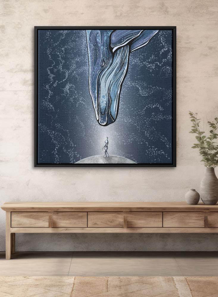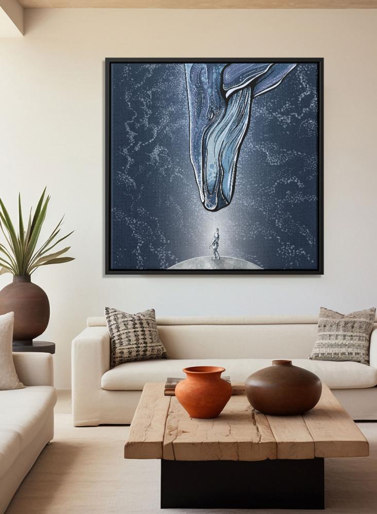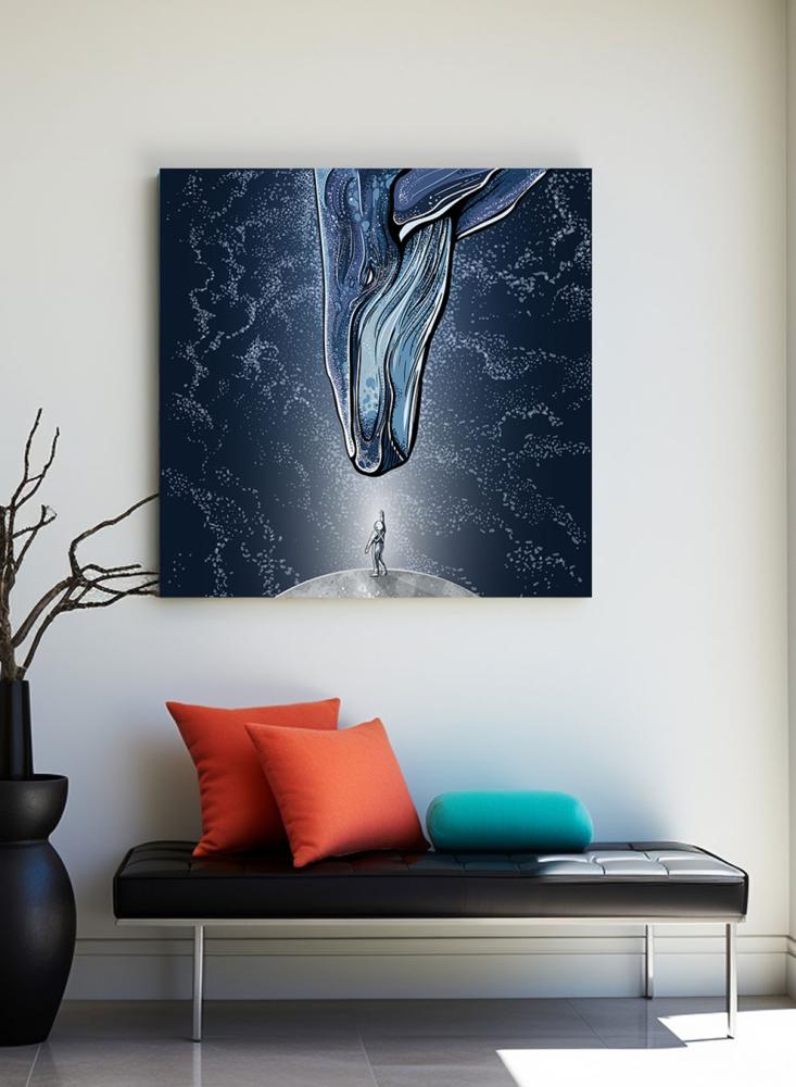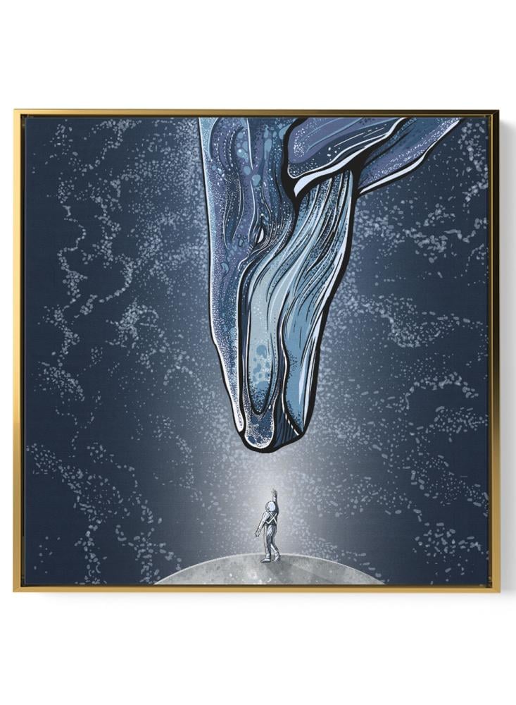 لوحة كانفاس على إطار خشبي بالفن التصوري لتصميم حوت فى الفضاء
