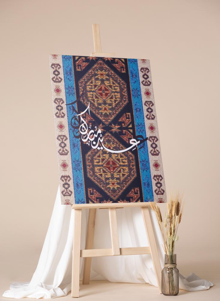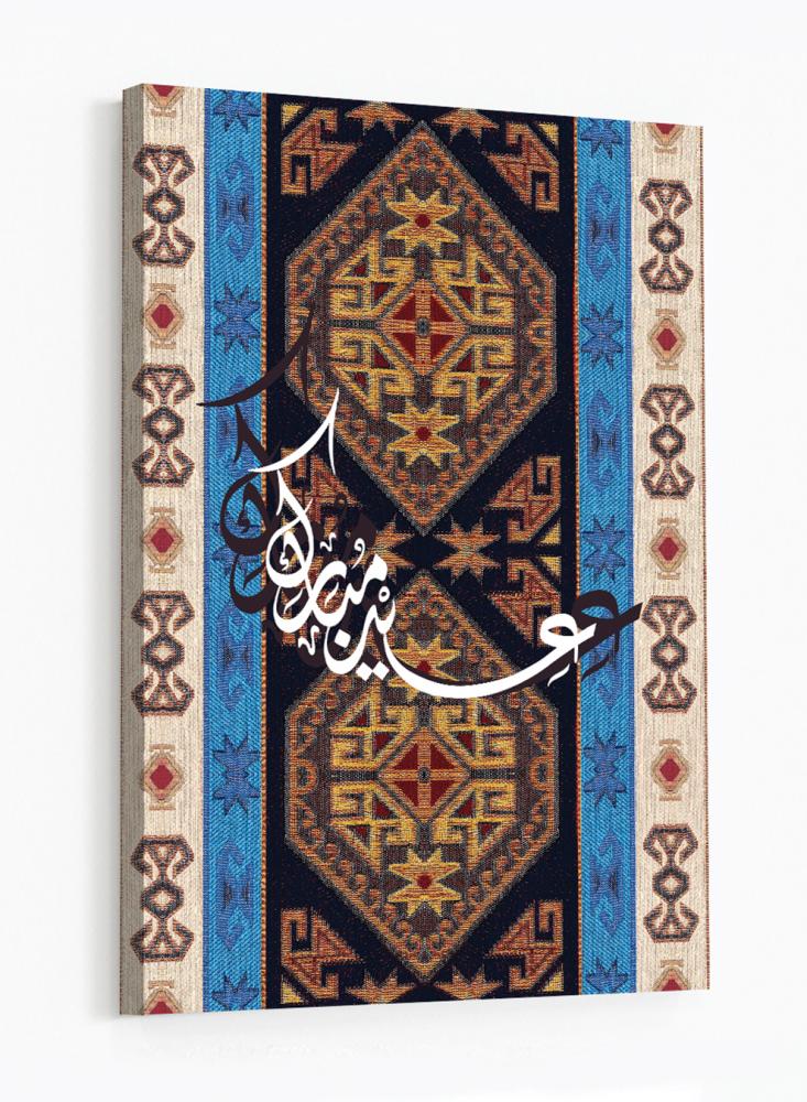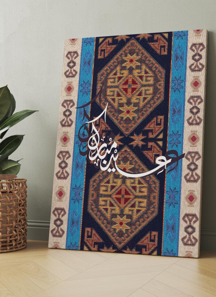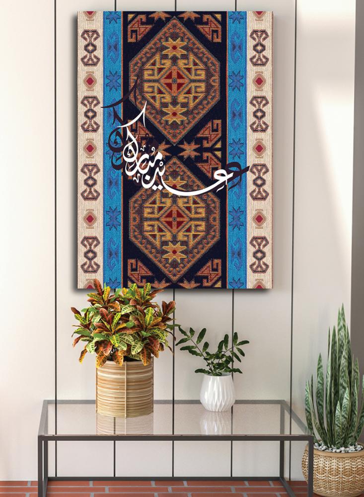 لوحة كانفاس على إطار خشبي بتصميم عيد مبارك على نمط سجادة