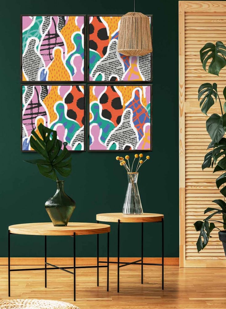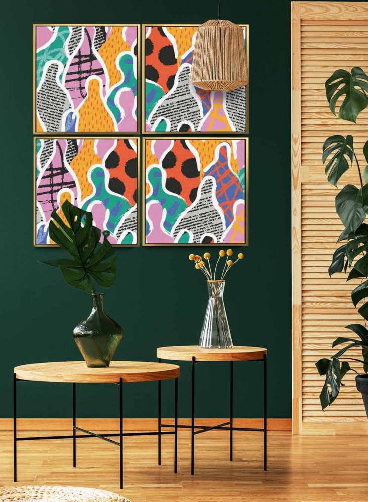 طقم اللوحات الكانفاس المربع على إطار خشبي بتصميم فني ملون من متجر لوحة،  يعد بمثابة إطلالة فنية رائعة تحمل في طياتها جمال التصميم وروعة الألوان. كل لوحة مصممة بعناية فائقة لتعبر عن تناغم مثالي بين الألوان والتفاصيل الدقيقة، مما يجعلها إضافة مثالية لأي ديكور داخلي.