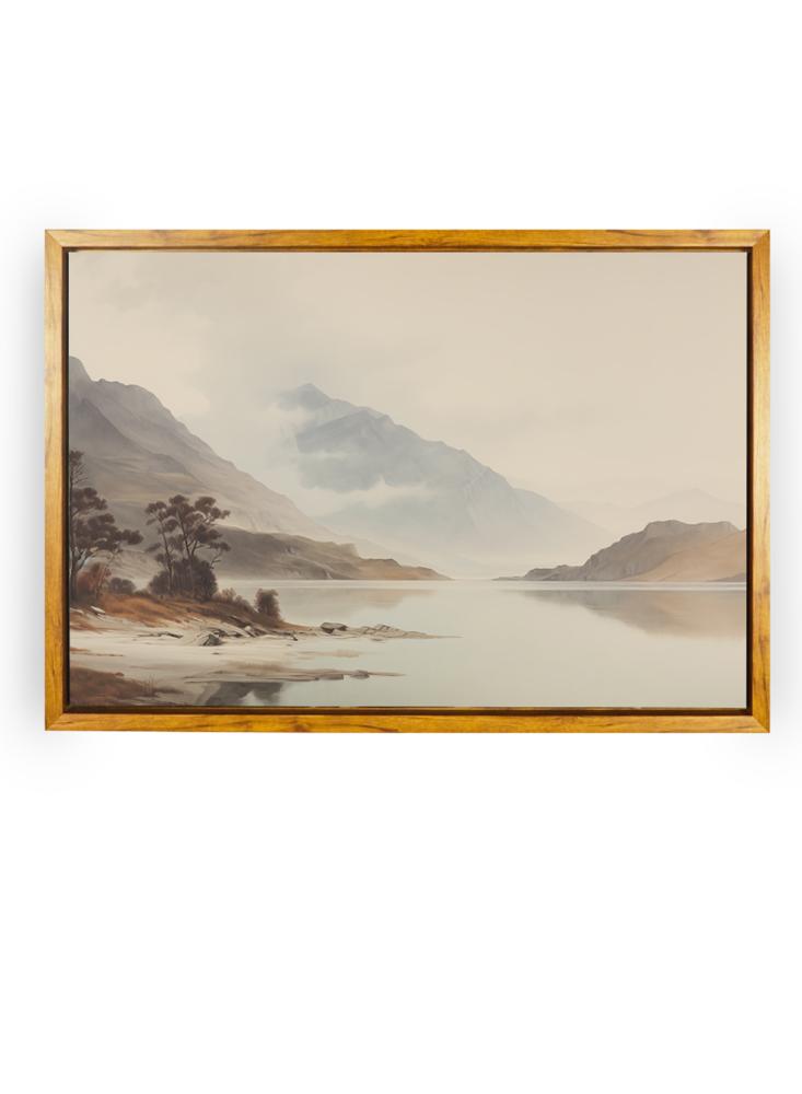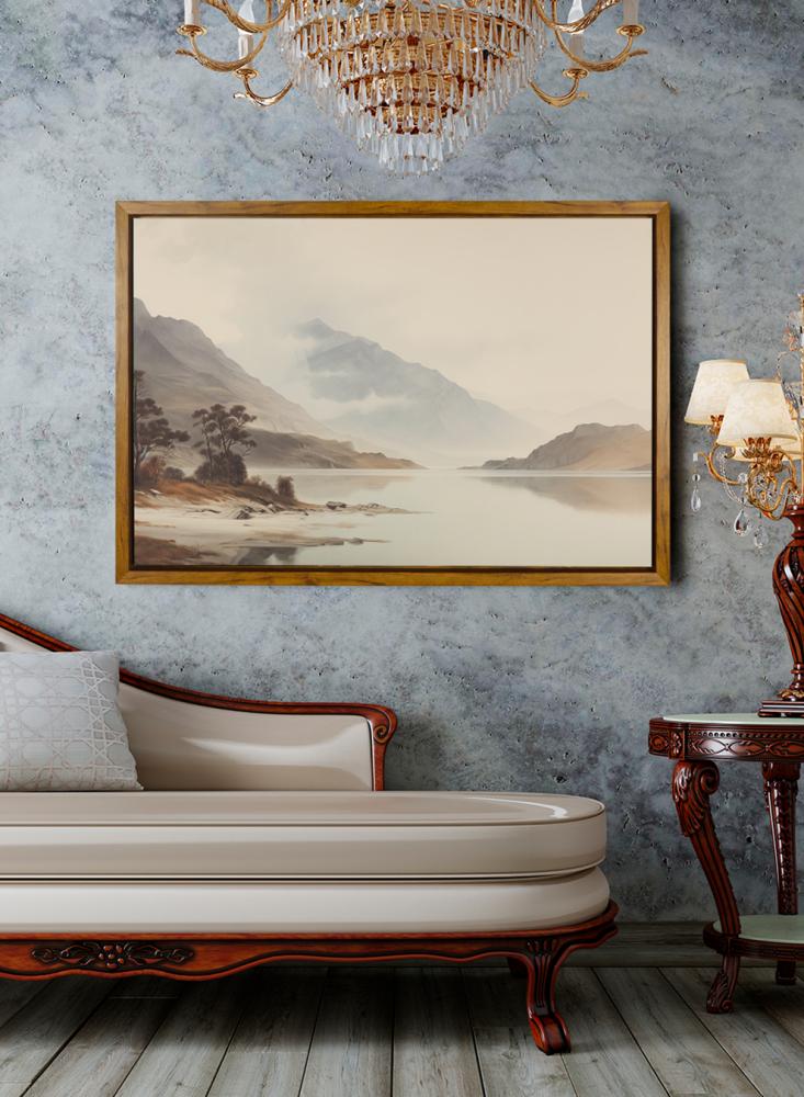 لوحة كانفاس على إطار خشبي بإطار خارجي باللون الخشبي وتصميم منظر كلاسيكي للطبيعة الجميلة