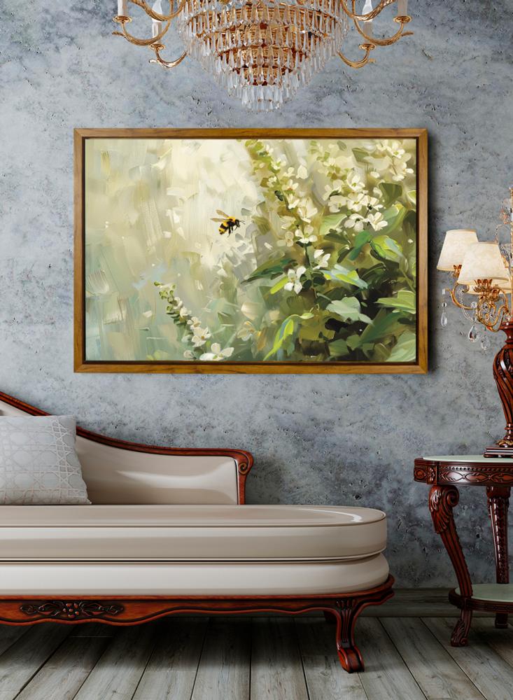 مواصفات لوحة كانفاس لنحلة تحلق حول الزهور