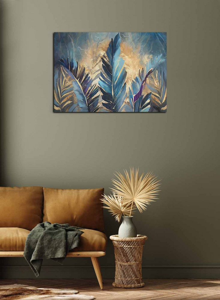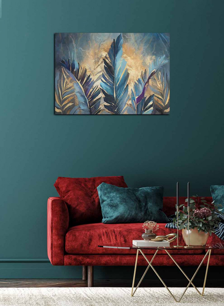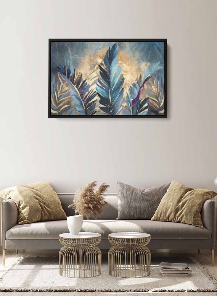 لوحة كانفاس على إطار خشبي، تصميم فن زيتي للأوراق النباتية ، للمنزل، غرفة المعيشة، المكتب، الديكور