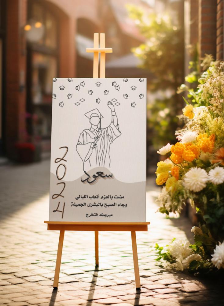 لوحة كانفاس للتهنئة لخريجي ٢٠٢٤ بإسم الخريج وتصميم مضت بالعزم أتعاب الليالي